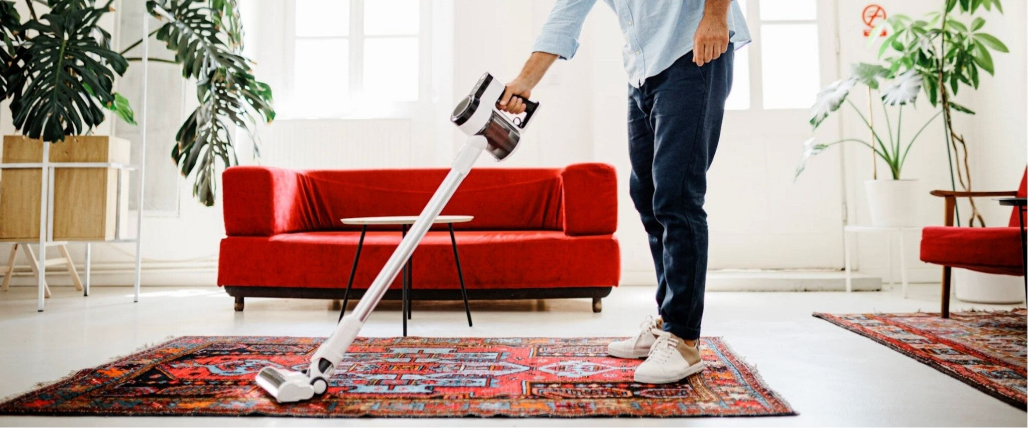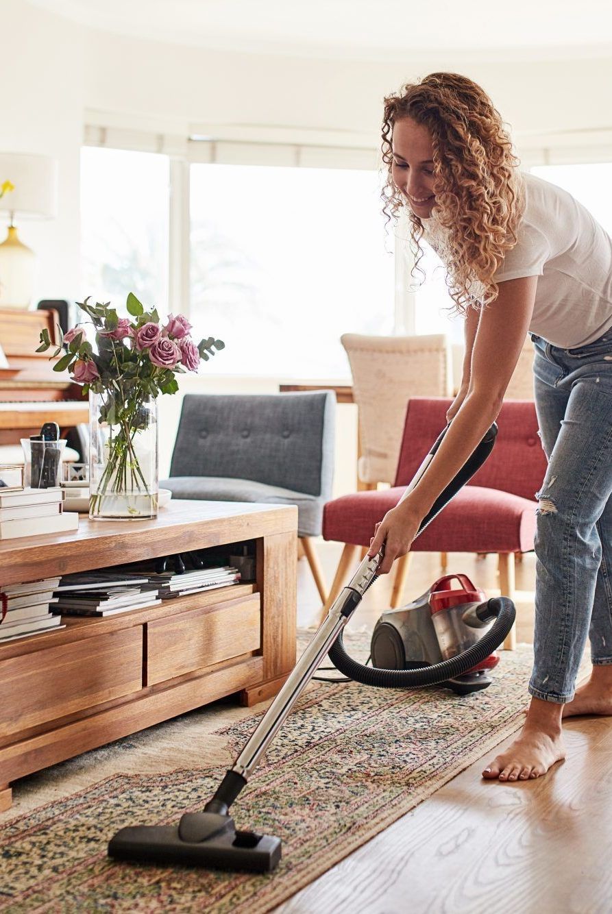 One easy tip I do is to sprinkle baking soda on the floor before vacuuming. It eliminates odors and gives the fibers a new scent.