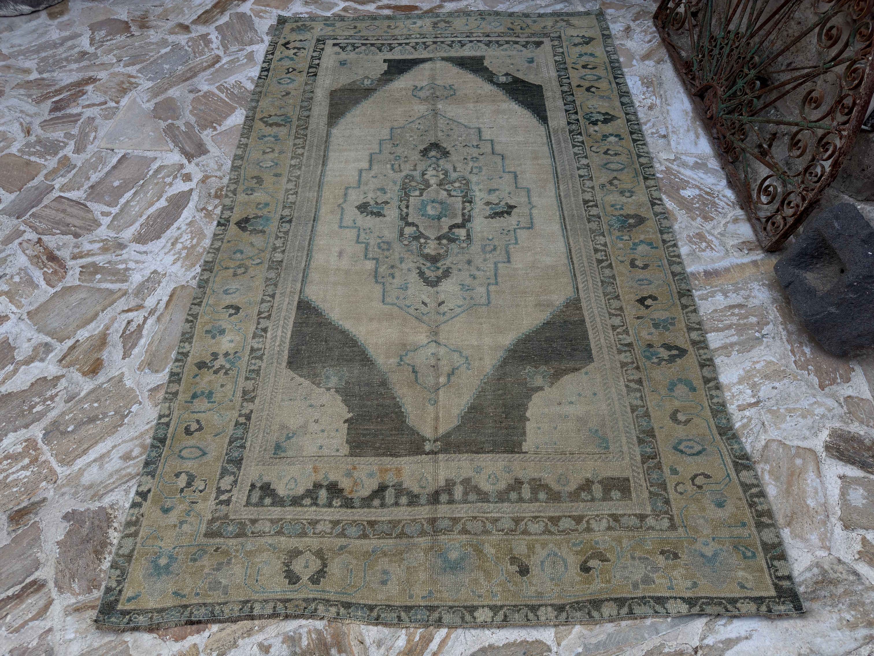 Rugs, with their designs, materials, and colors determined by skilled weavers, are crafted using the hand-knotting technique on a vertical loom. Each rug has its unique knotting technique. Completing a single rug can take months or even years. The rugs are professionally cleaned; age-related wear and natural inconsistencies are inherent to these unique handmade Turkish rugs. Passed down from generation to generation, these rugs are now just a click away.