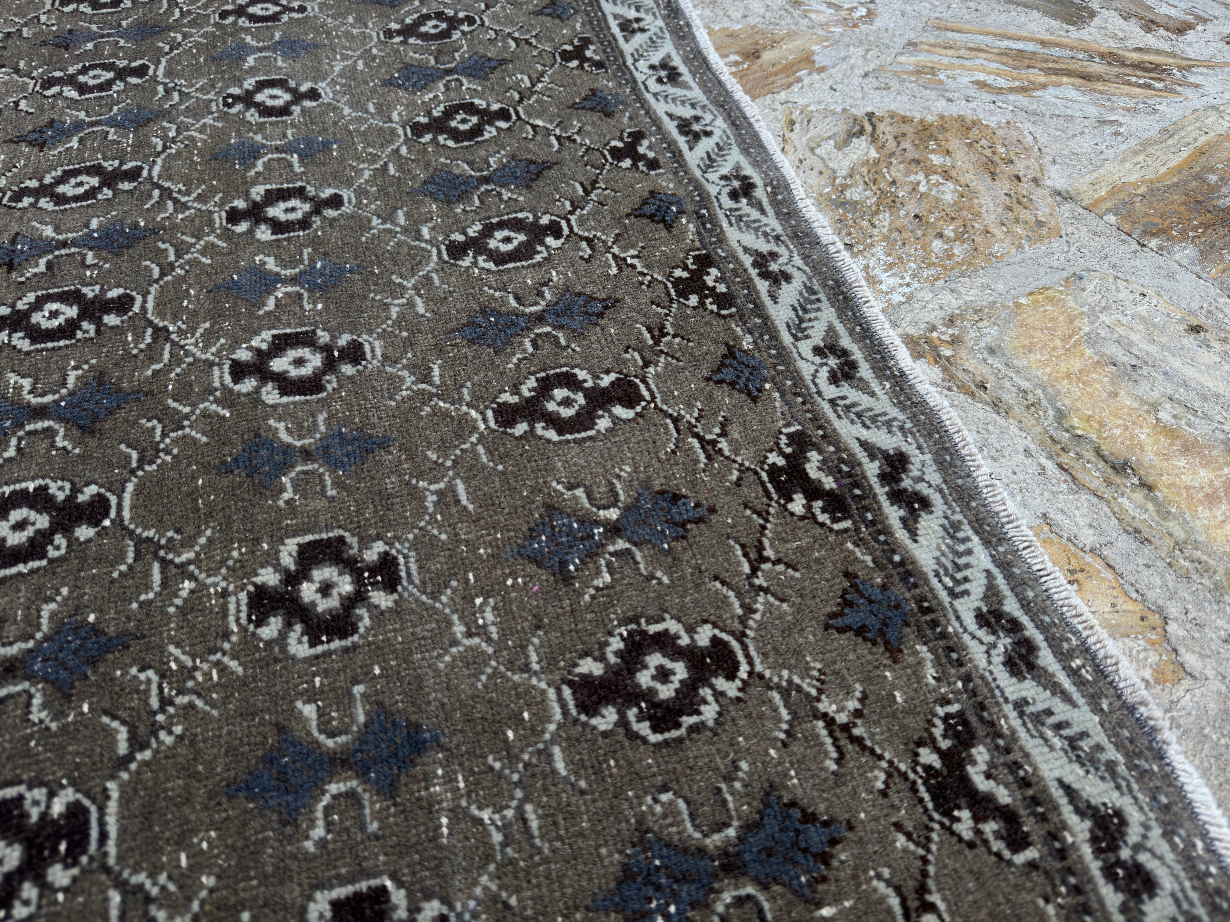 Entering our area dedicated to Vintage Brown Rugs is like entering a book filled with history and texture. The patina of decades is evident in each brown old rug, with softly fading designs that recall many footsteps and warm get-togethers. These hand-woven rugs, which were salvaged from homes where they were worn with love, combine the warmth of wool with tenacity and individuality. This type of vintage brown carpet may have minor wear, but that wear is what makes it genuinely unique—a calming focal point that beckons you to stay.