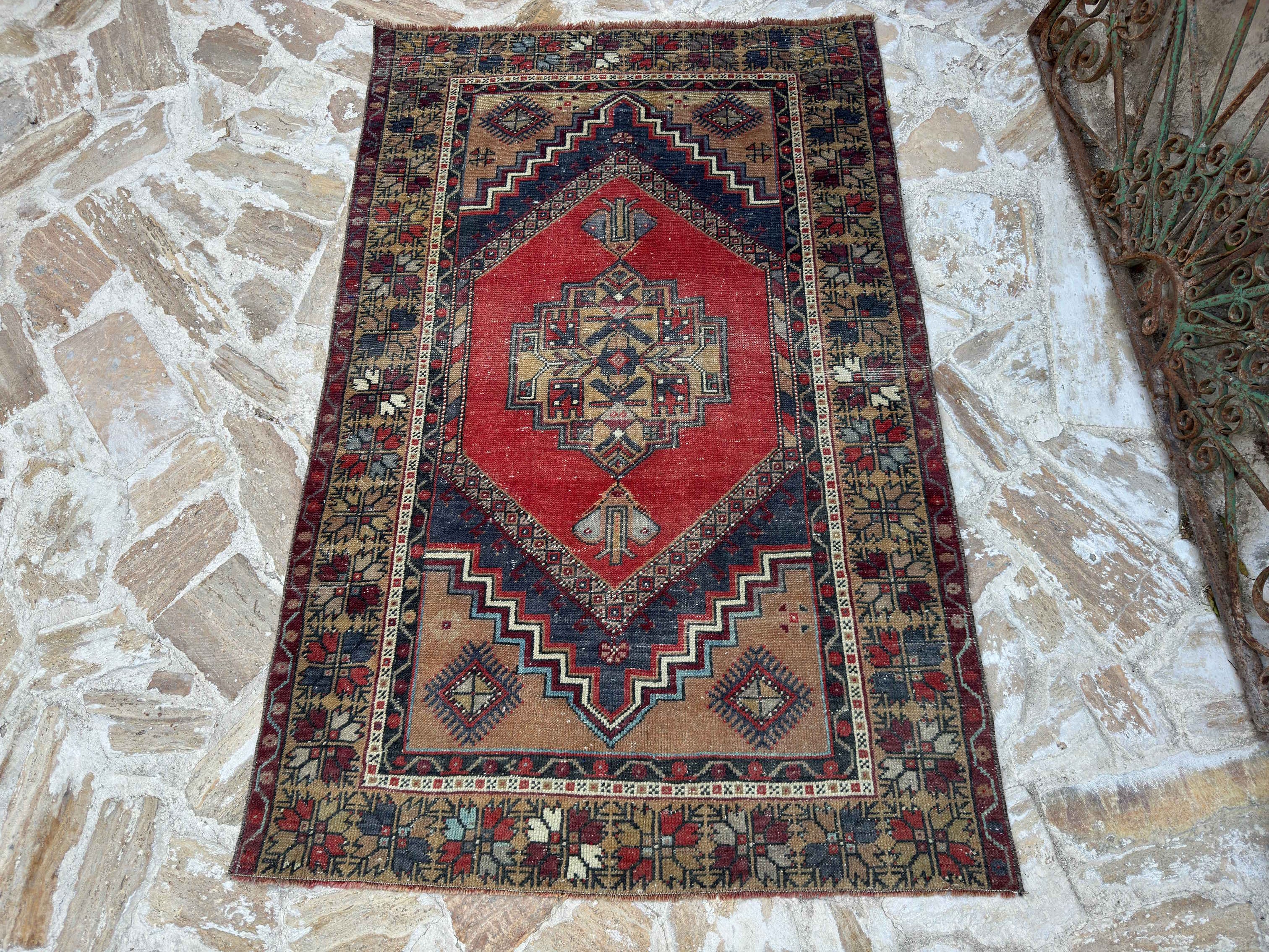 Rugs, with their designs, materials, and colors determined by skilled weavers, are crafted using the hand-knotting technique on a vertical loom. Each rug has its unique knotting technique. Completing a single rug can take months or even years. The rugs are professionally cleaned; age-related wear and natural inconsistencies are inherent to these unique handmade Turkish rugs. Passed down from generation to generation, these rugs are now just a click away.