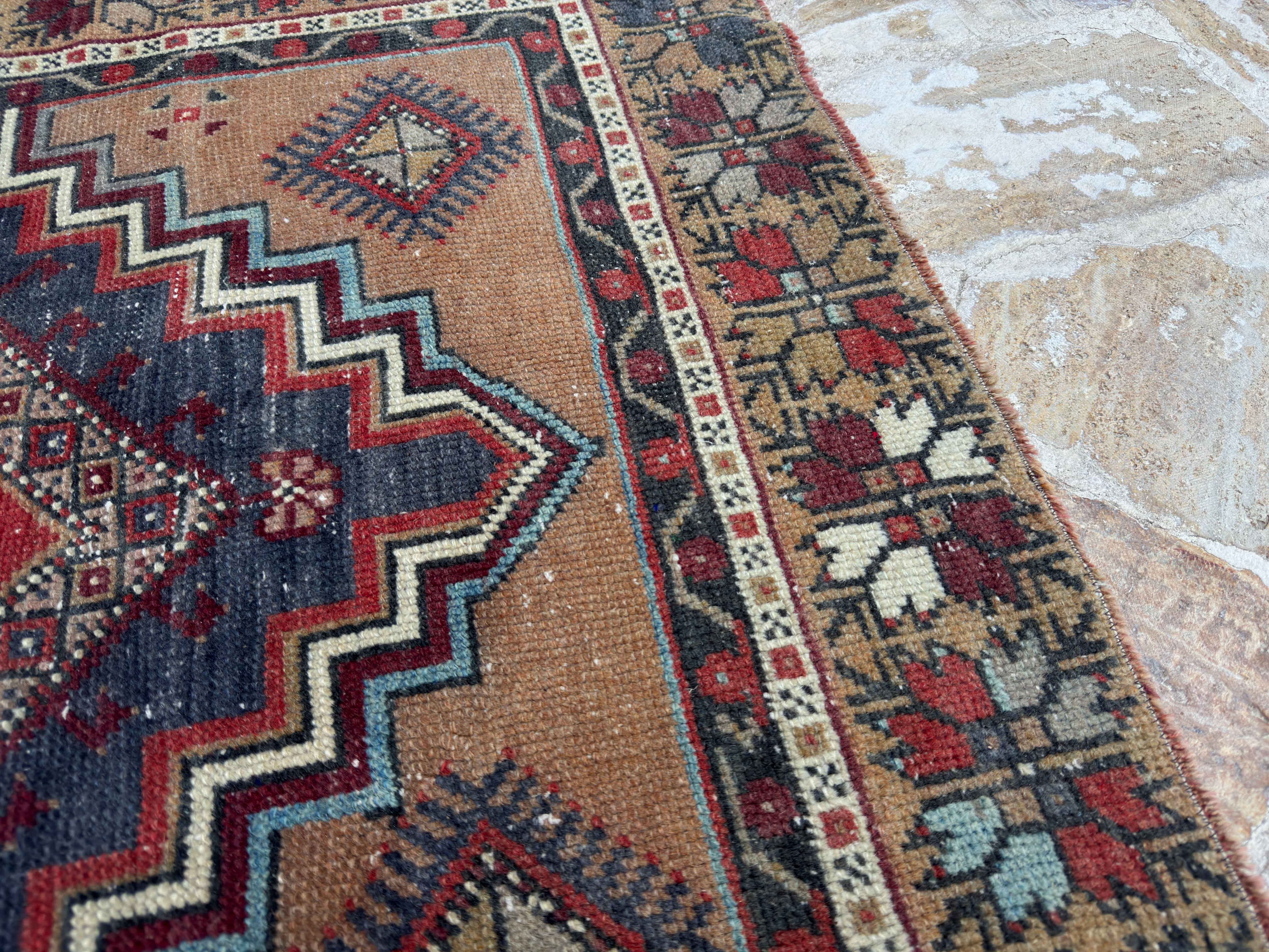Rug has been professionally cleaned; age-related wear and natural inconsistencies are inherent in these unique, handcrafted vintage rugs.