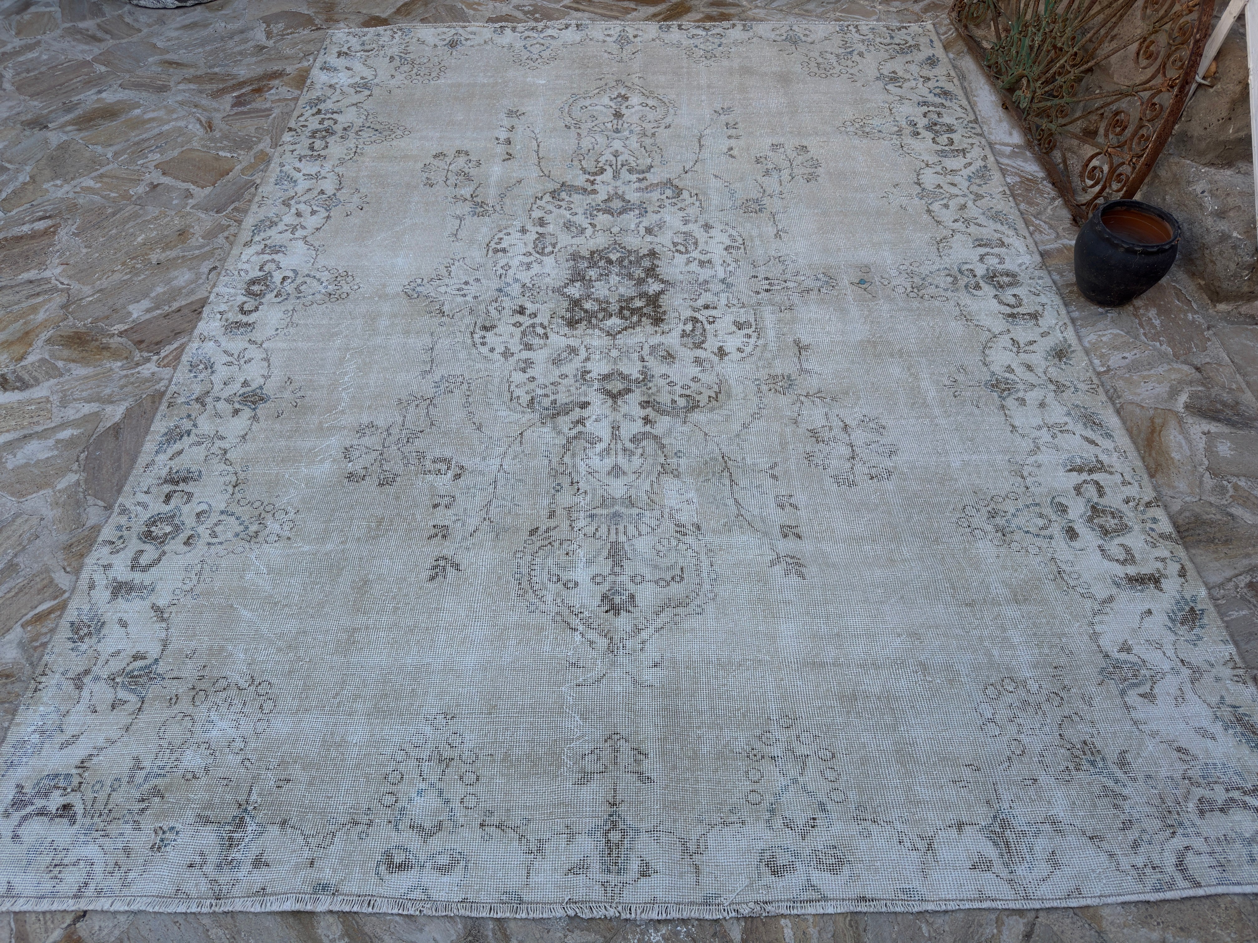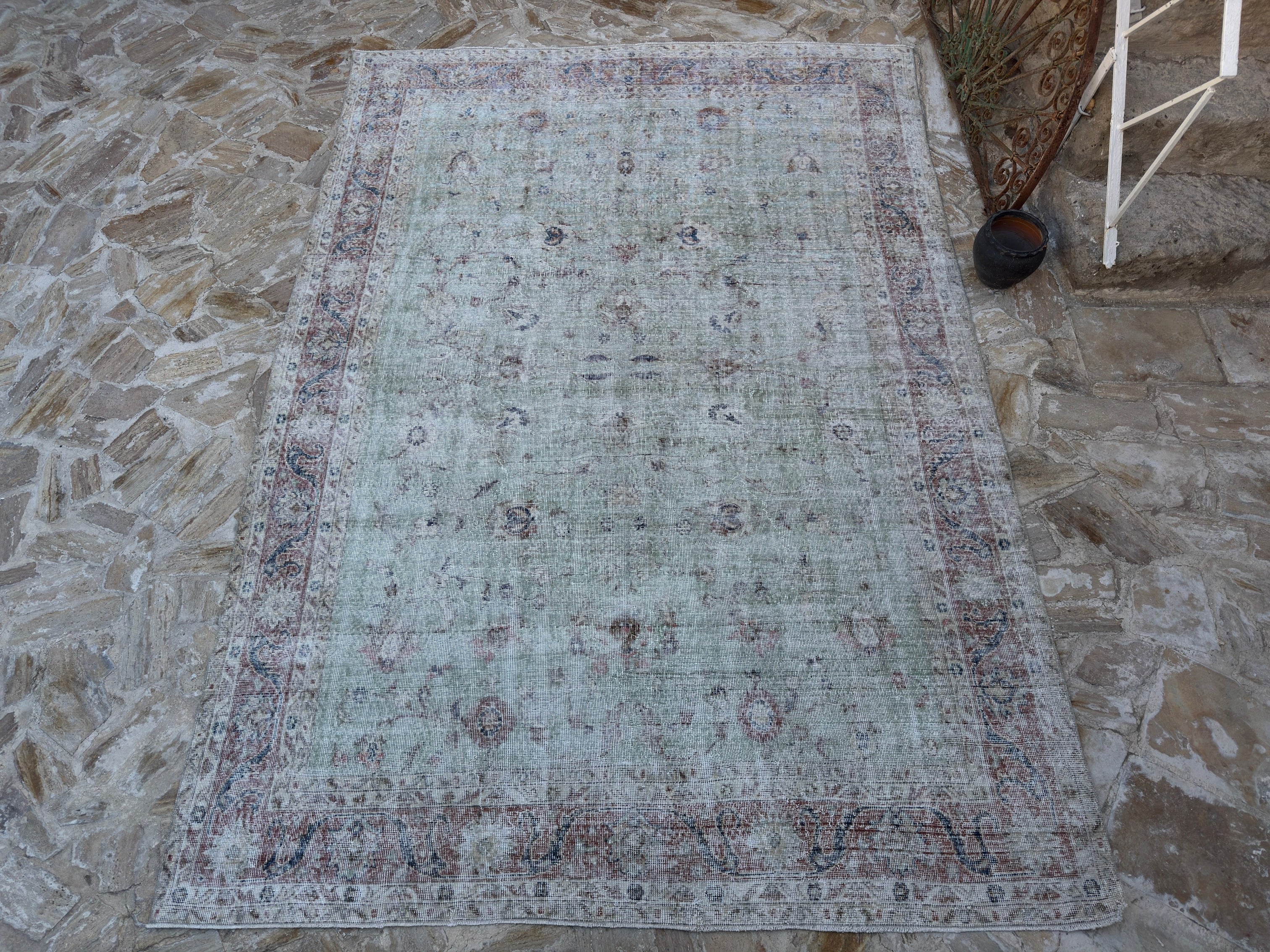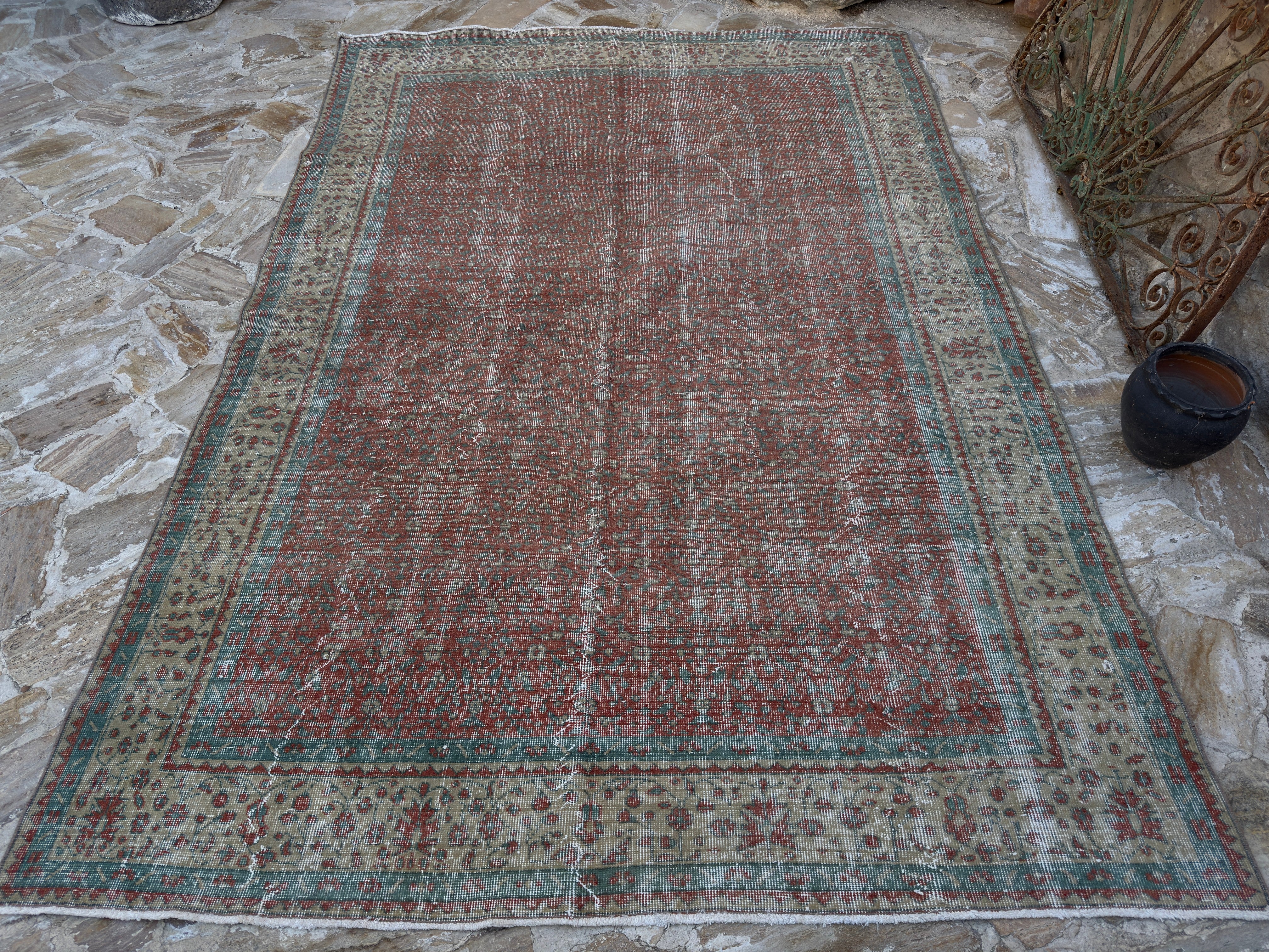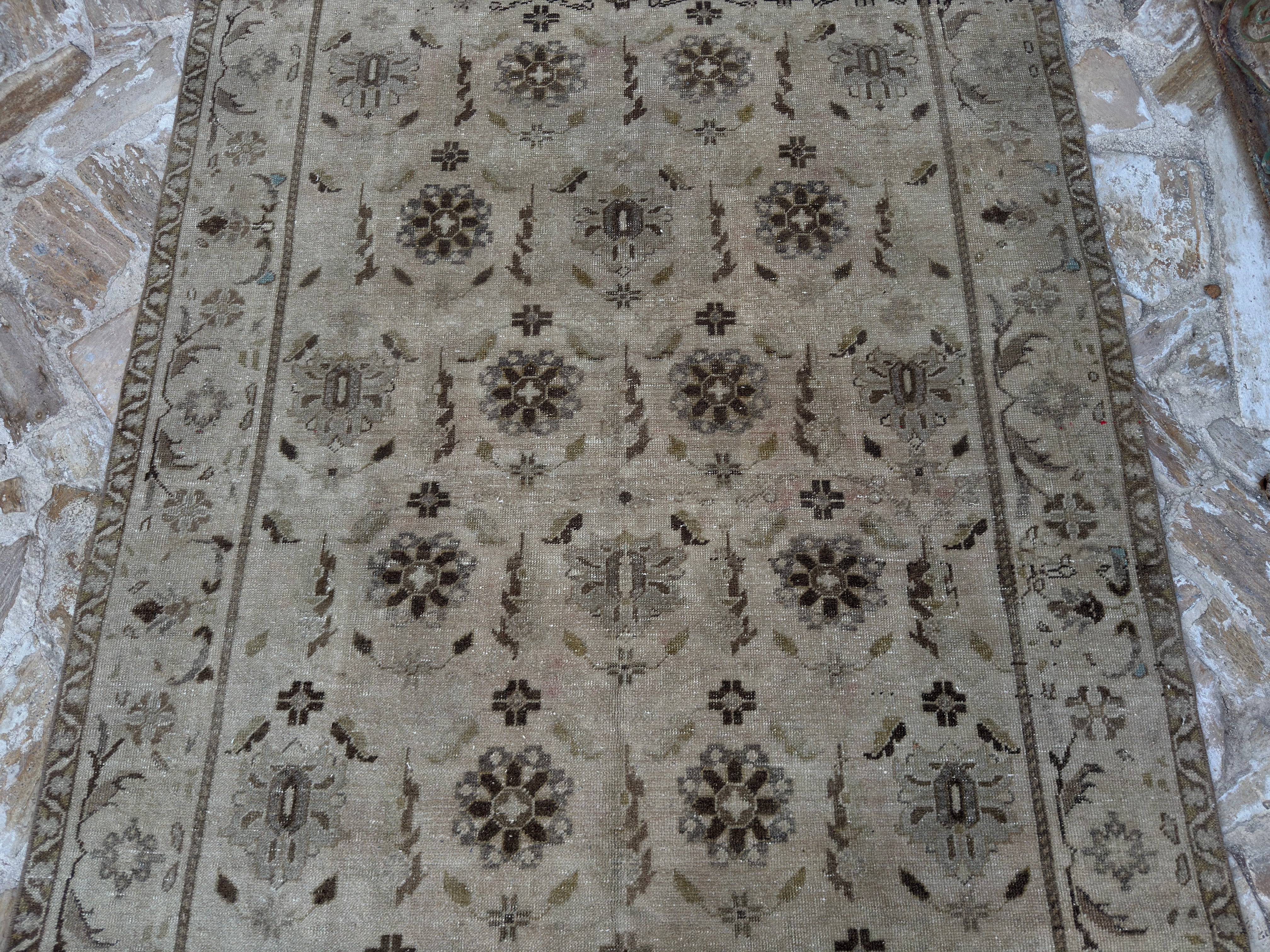 This is hard because there are both real and fake rugs on the market. People have sent me pictures of rugs and asked, "Is this a real vintage Turkish rug?" My answer usually starts with "Turn it over." The back of a rug tells you a lot. Real vintage Turkish rugs reveal the knots, uneven spacing, and little flaws that people make. Rugs manufactured by machines look excessively crisp and clean. Another sign? The stuff. Turkish wool rugs are soft but strong, not like plastic. You will know if you run your hand over one.