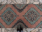 Rug has been professionally cleaned; age-related wear and natural inconsistencies are inherent in these unique, handcrafted vintage rugs.