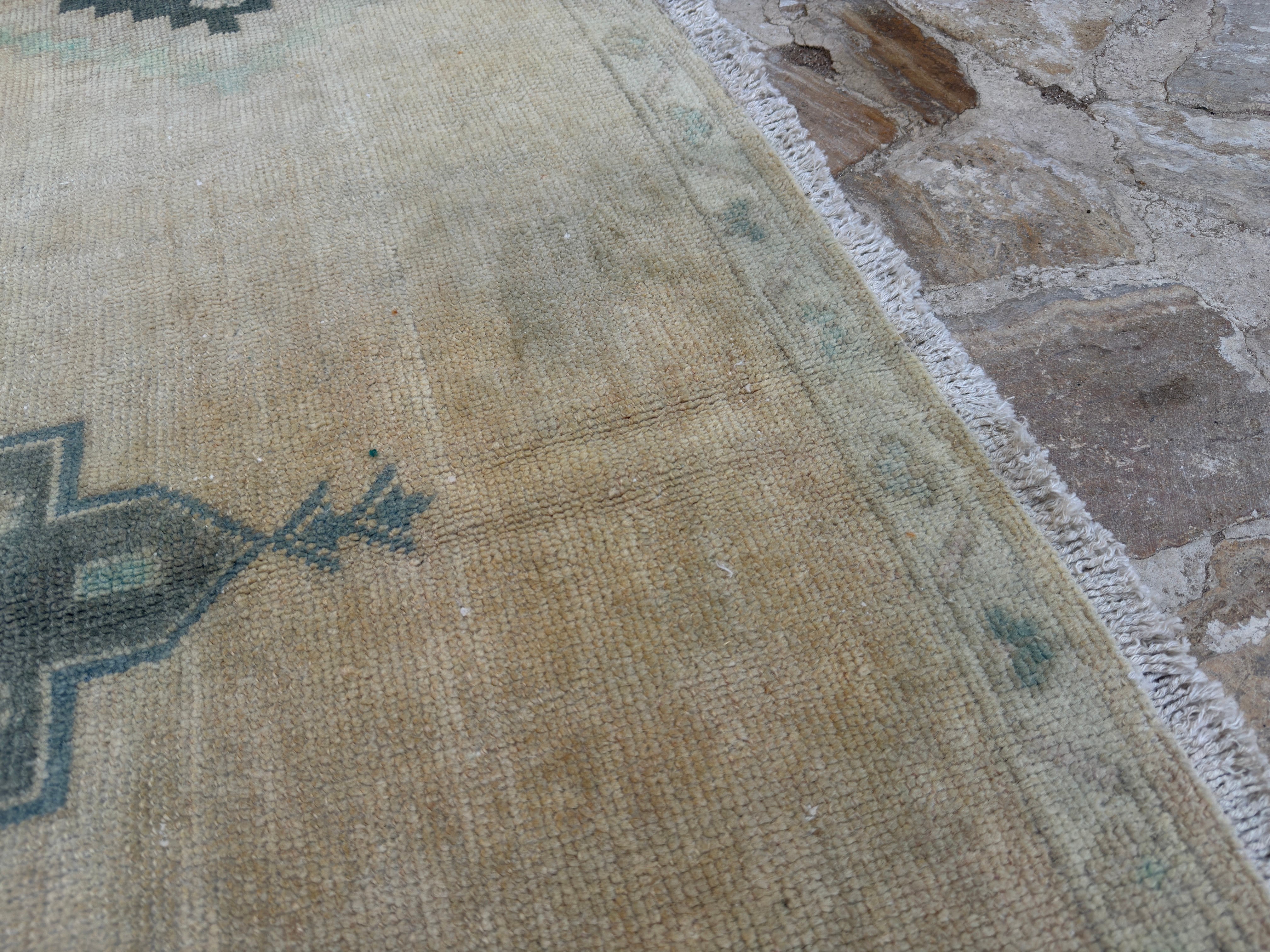 Rug has been professionally cleaned; age-related wear and natural inconsistencies are inherent in these unique, handcrafted vintage rugs.