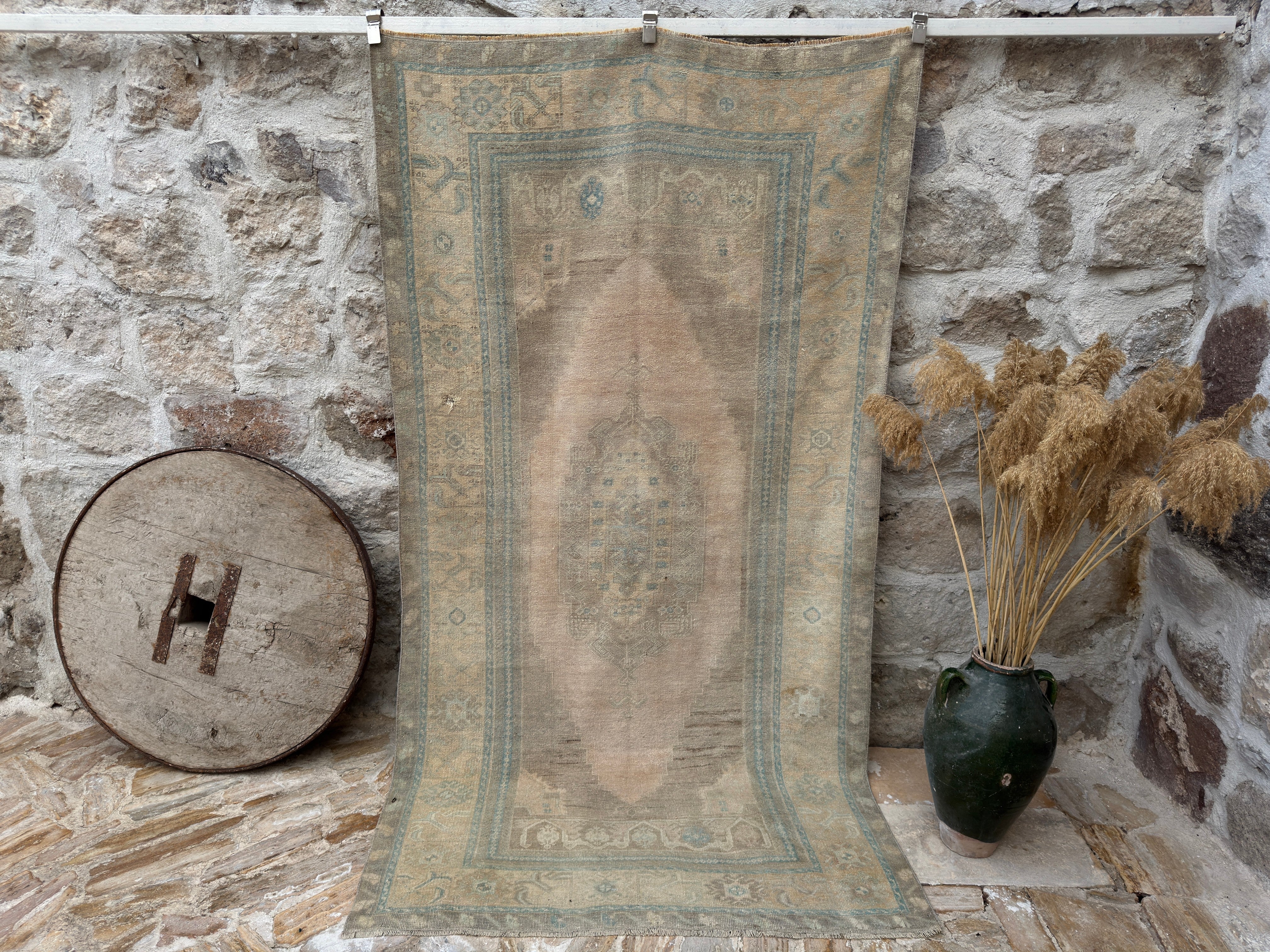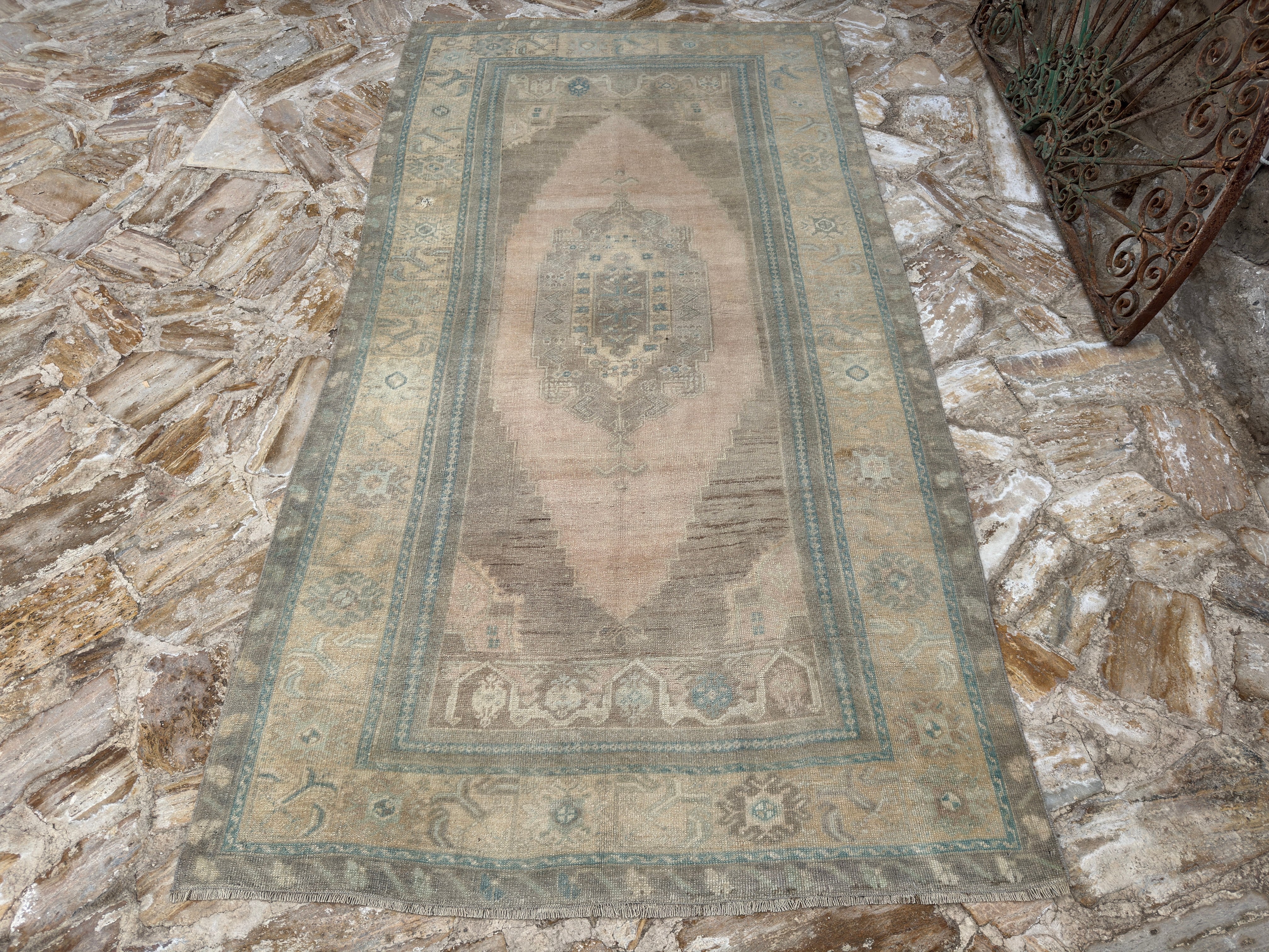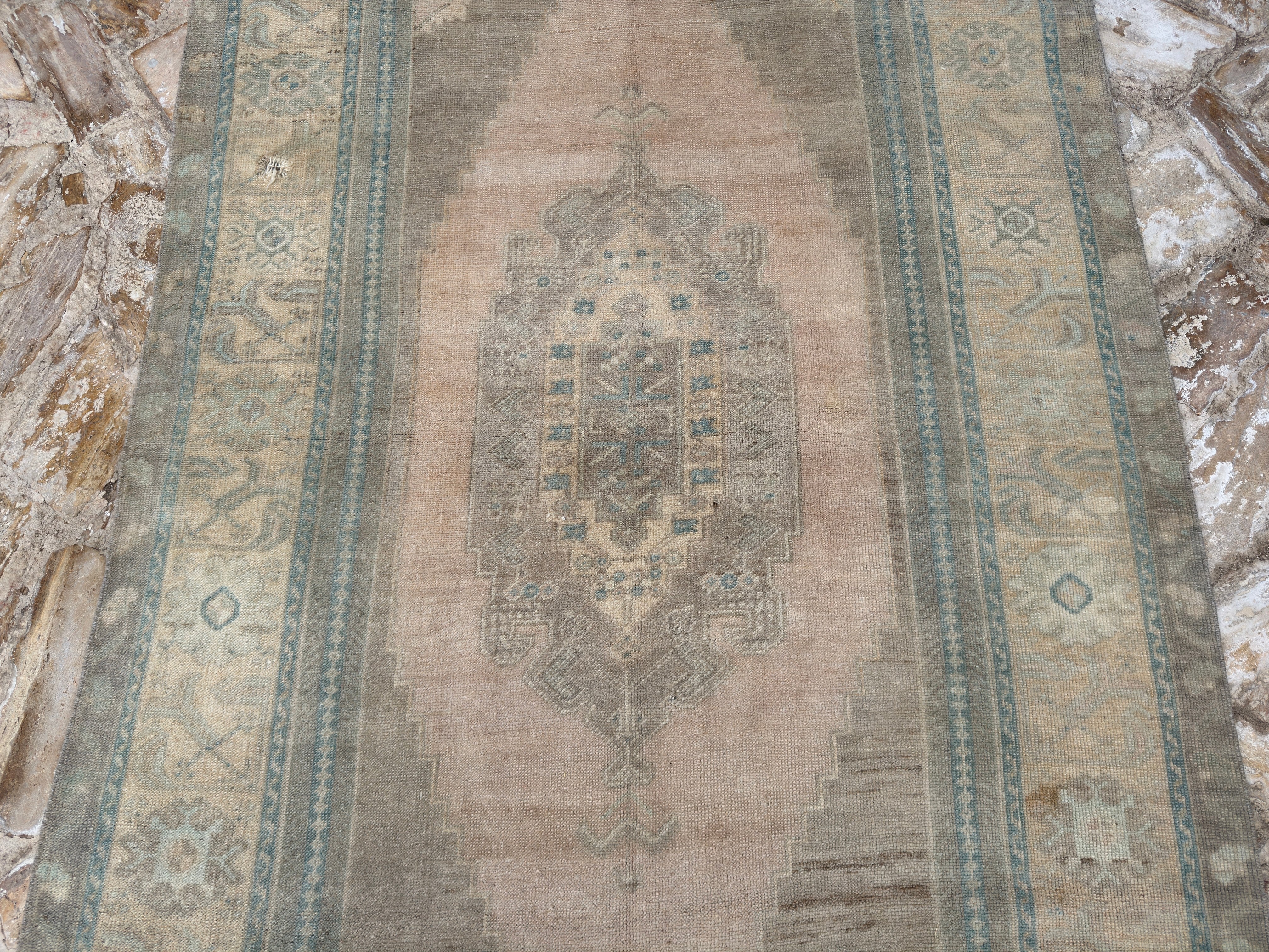 Rug has been professionally cleaned; age-related wear and natural inconsistencies are inherent in these unique, handcrafted vintage rugs.