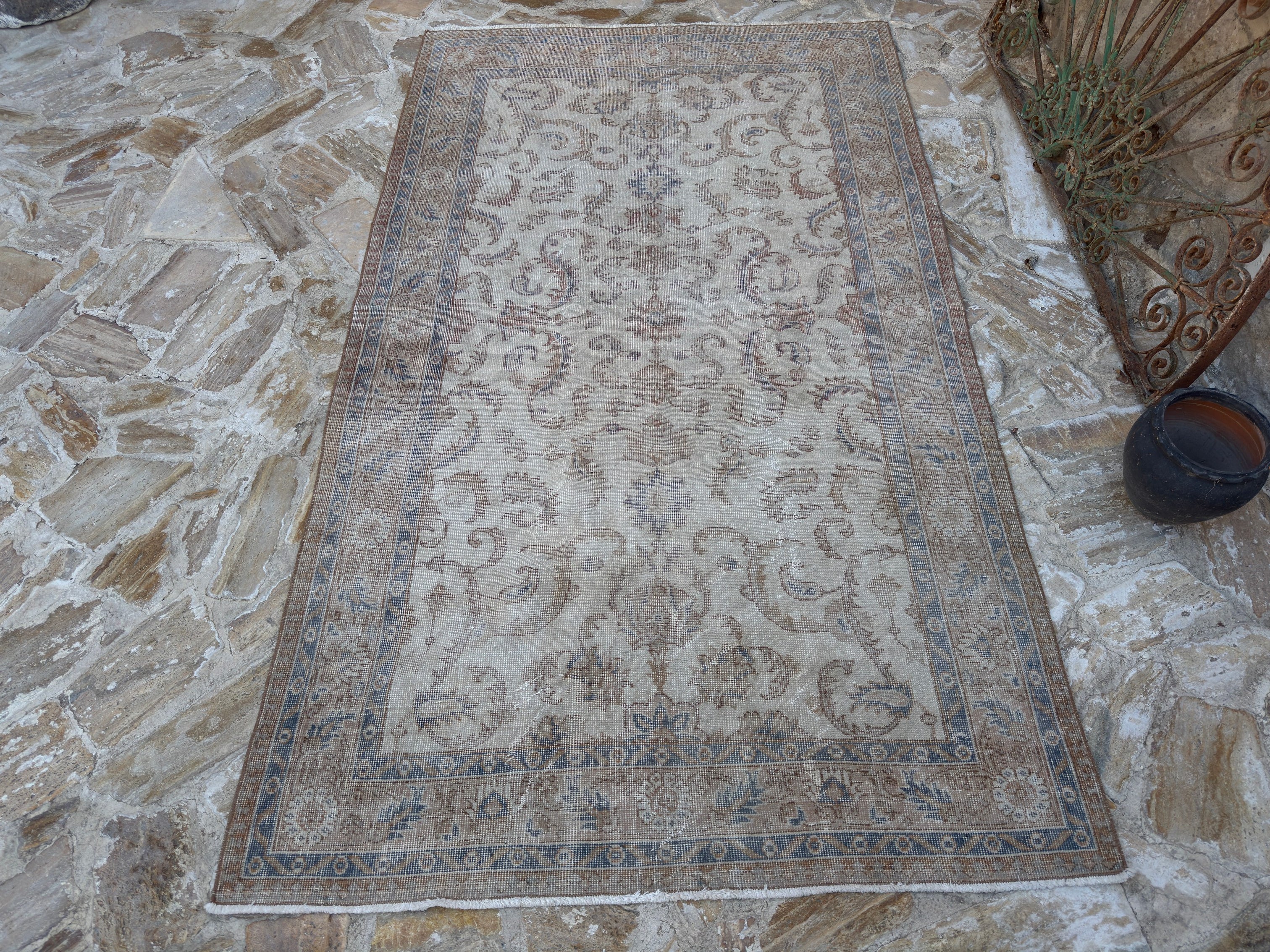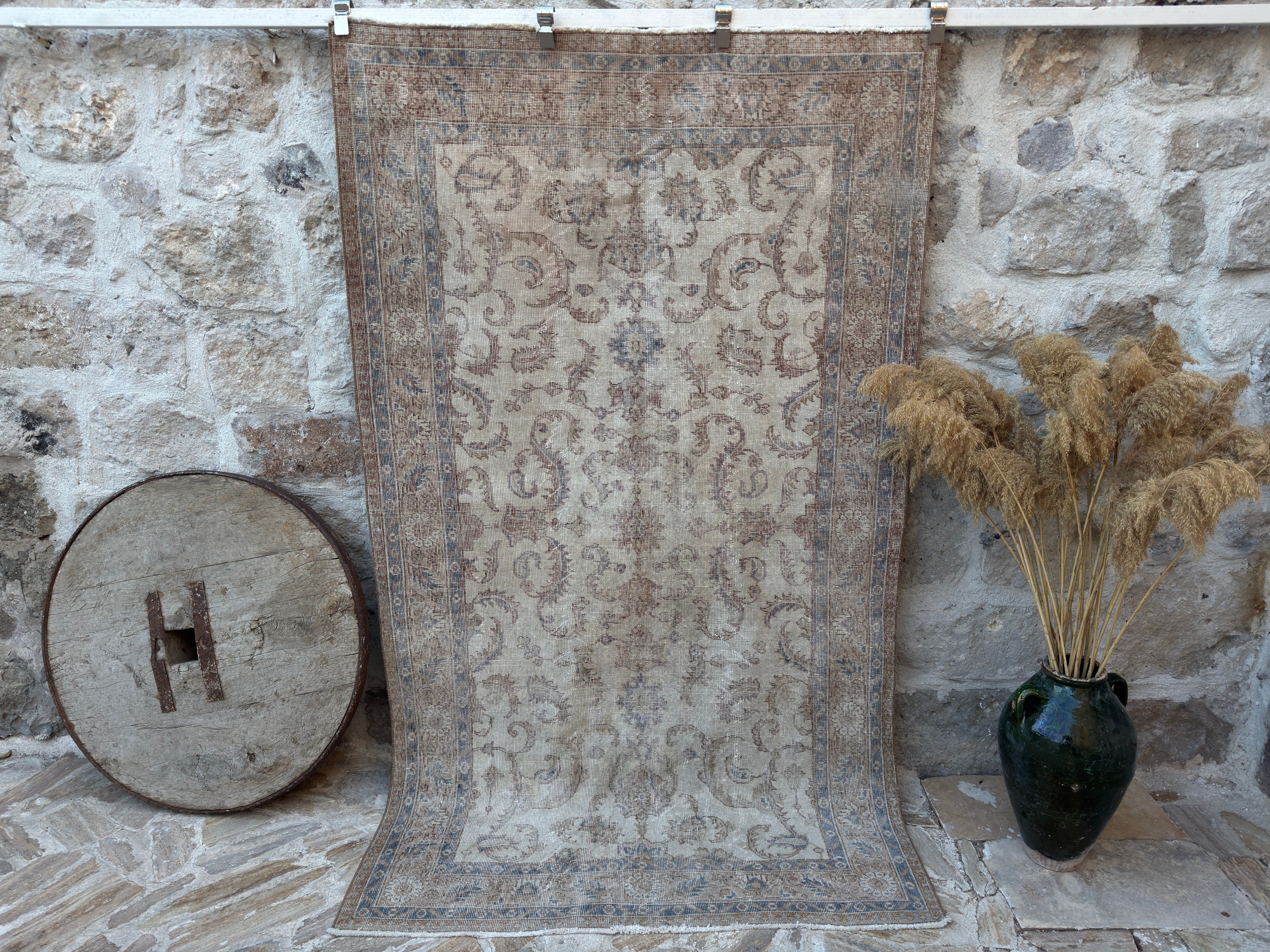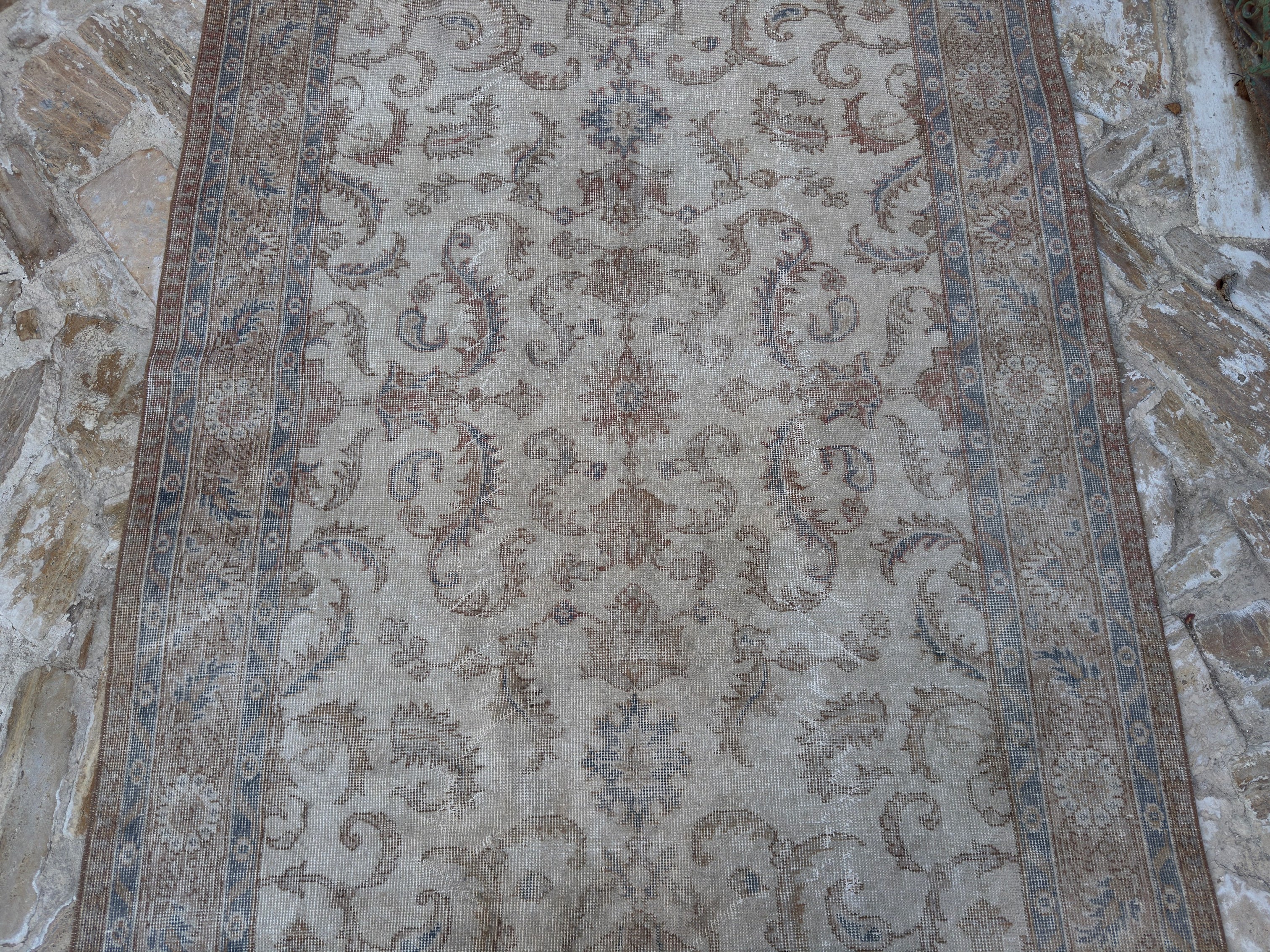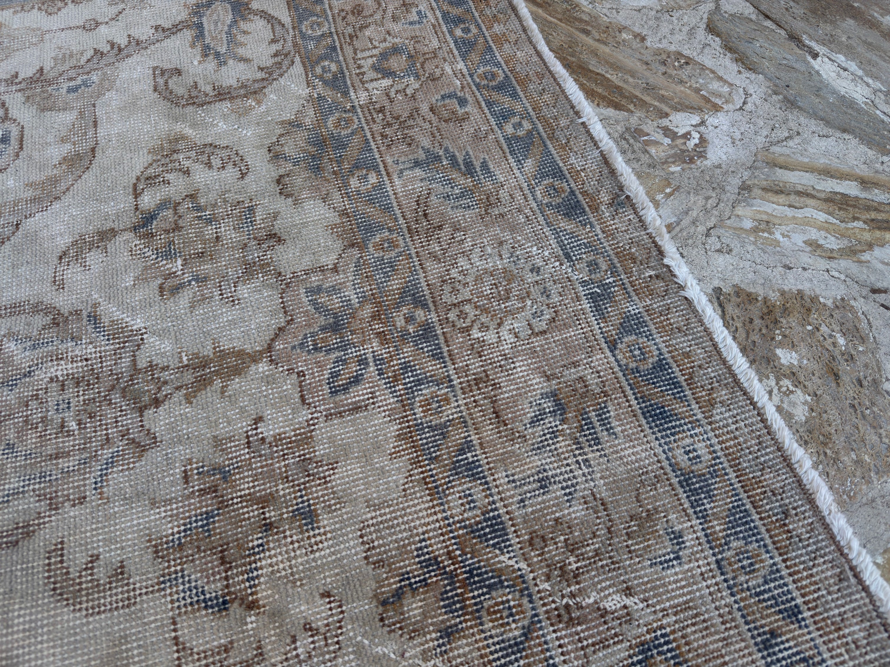One-of-a-kind vintage distressed rug, handknotted in Turkish