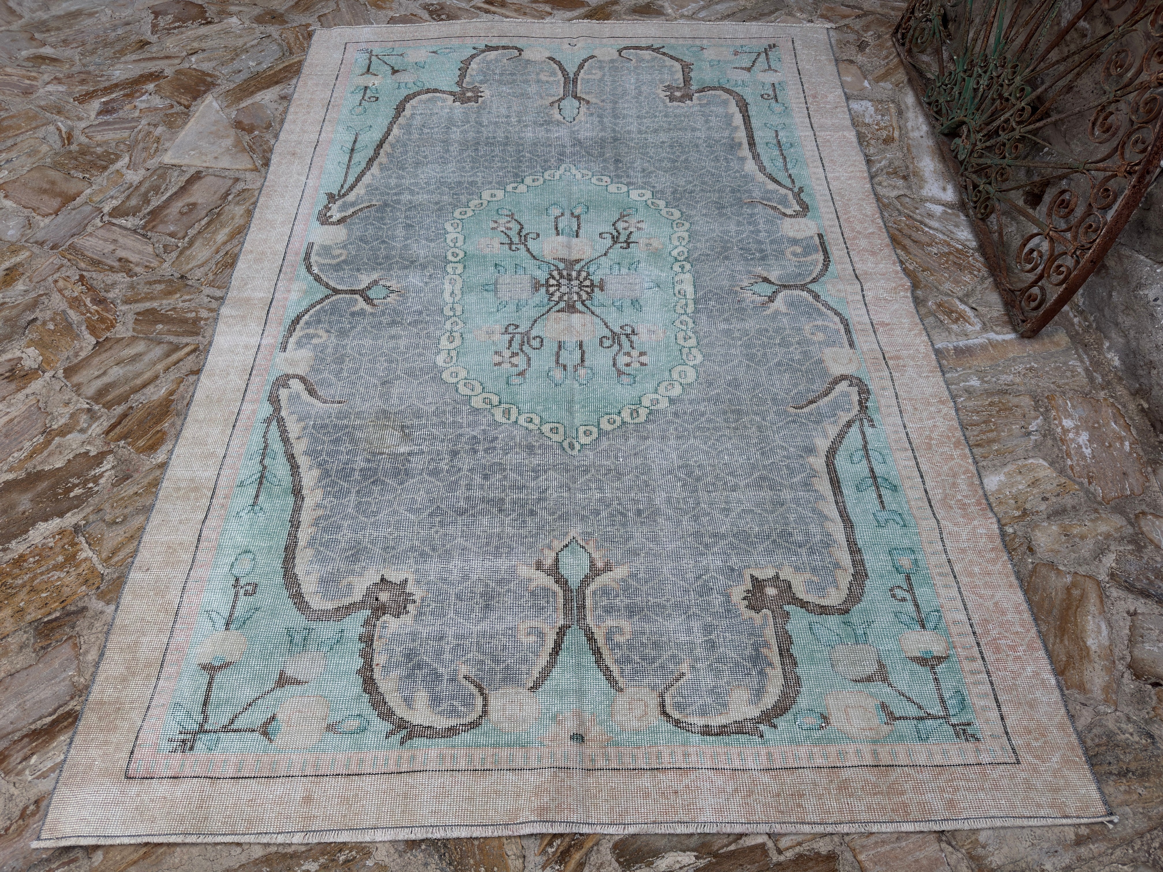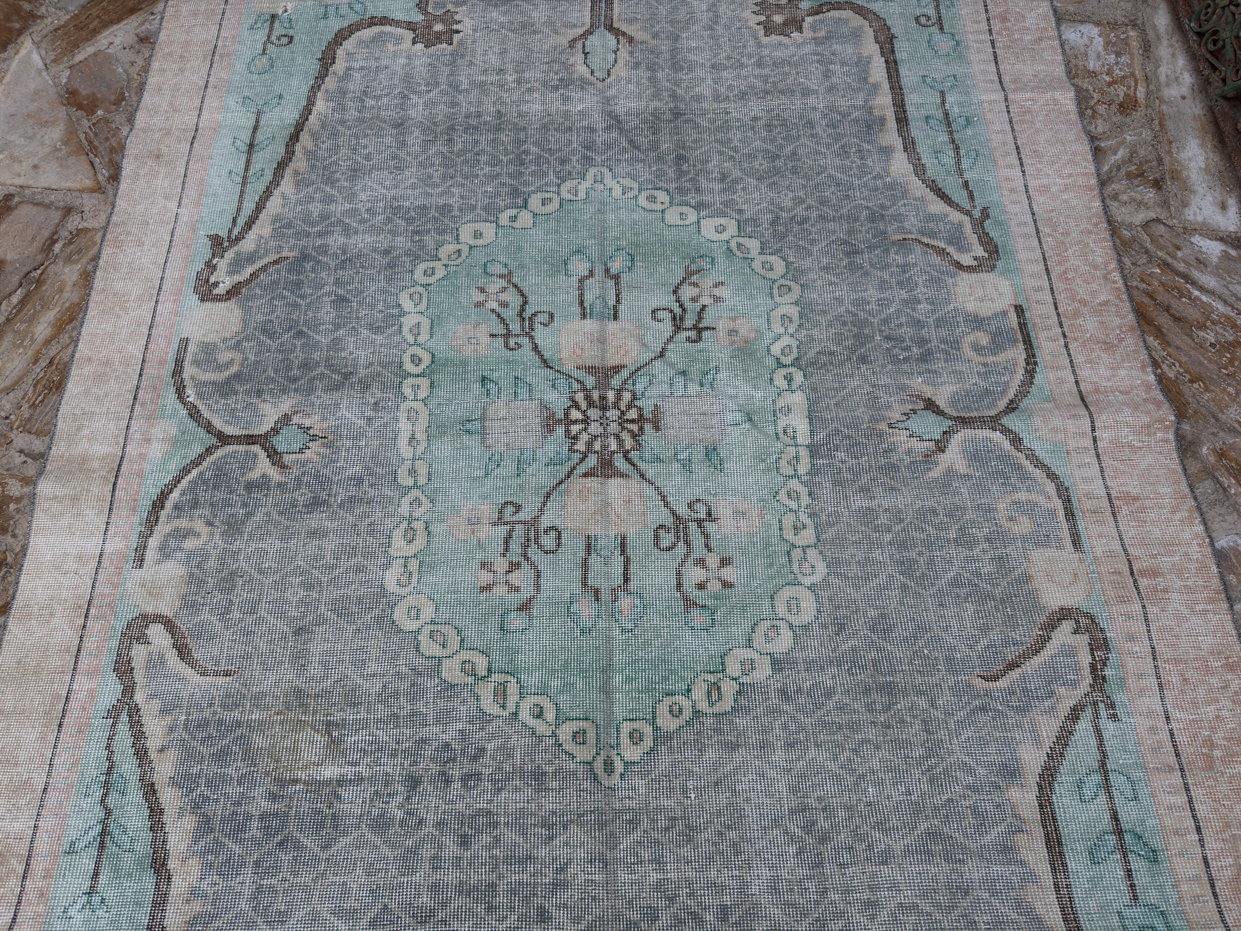 Rug has been professionally cleaned; age-related wear and natural inconsistencies are inherent in these unique, handcrafted vintage rugs.