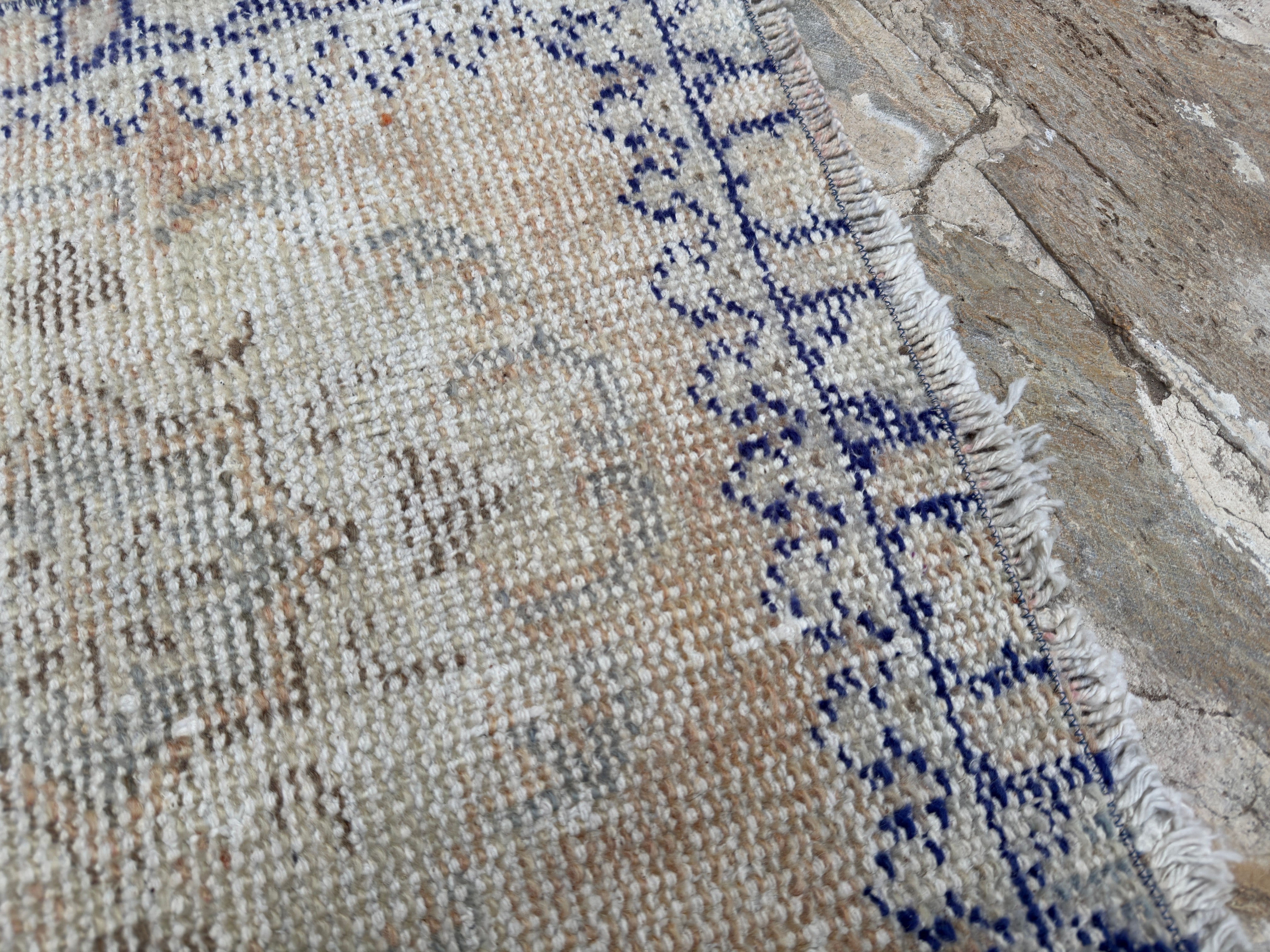 Rug has been professionally cleaned; age-related wear and natural inconsistencies are inherent in these unique, handcrafted vintage rugs.