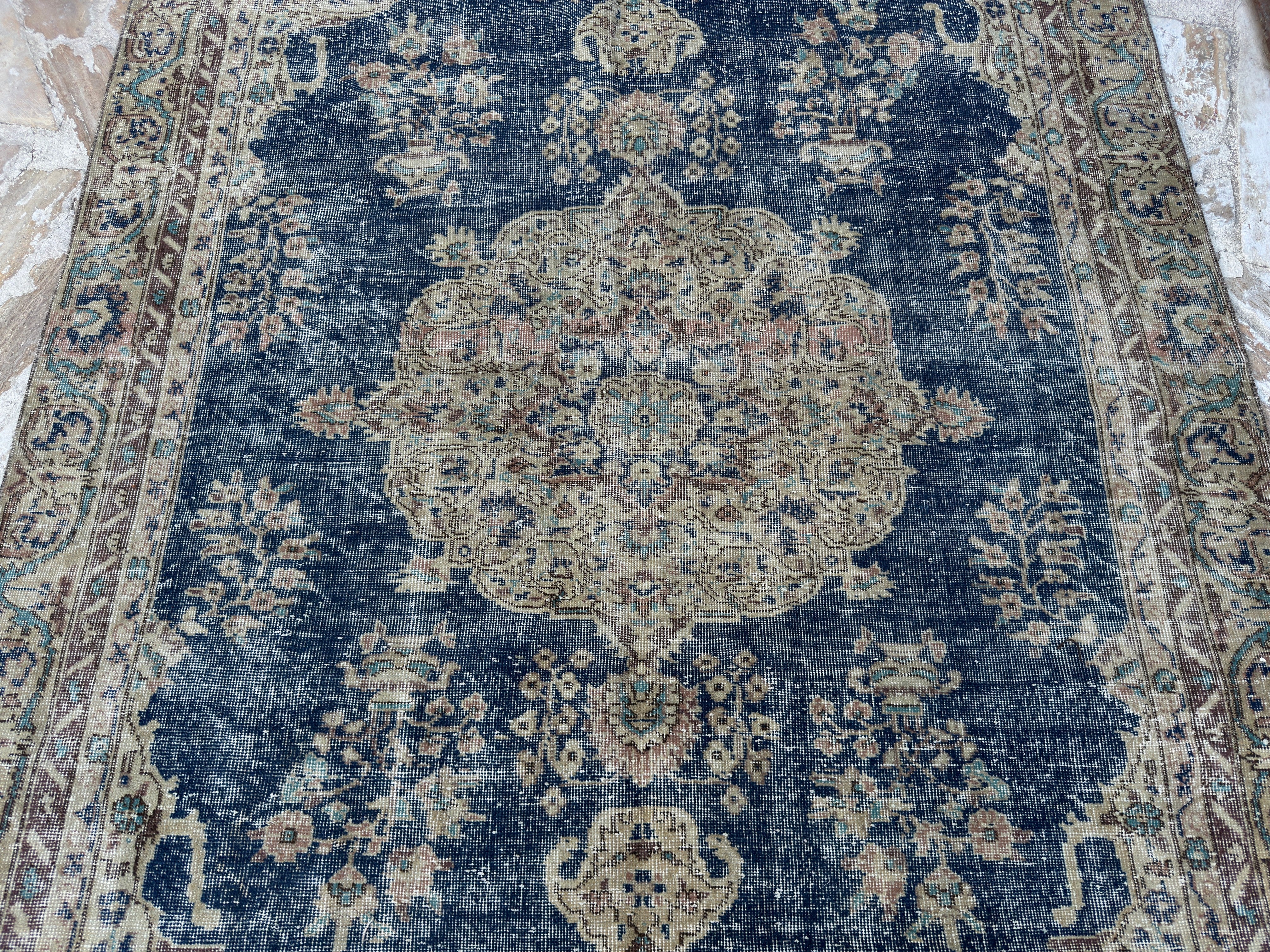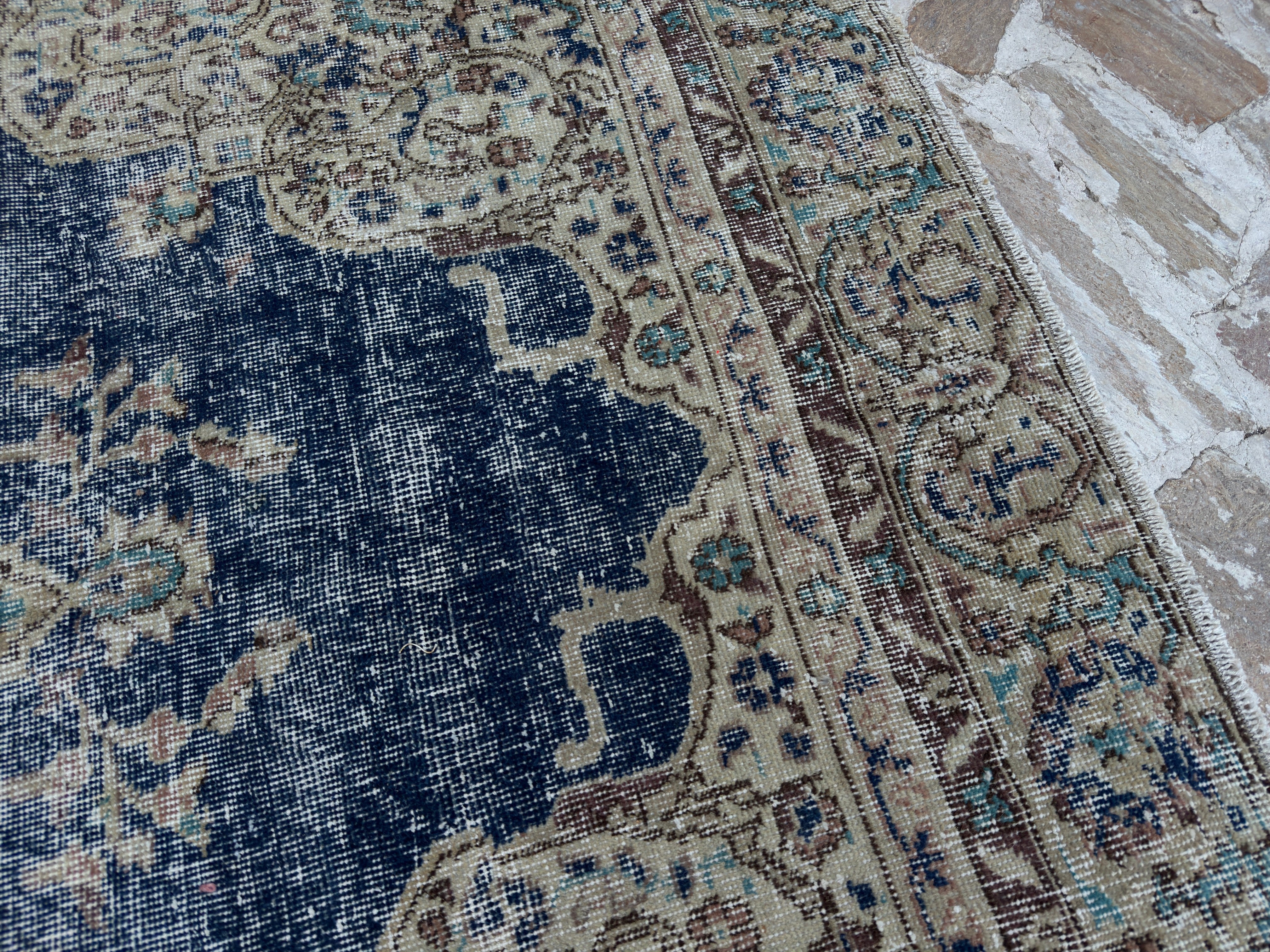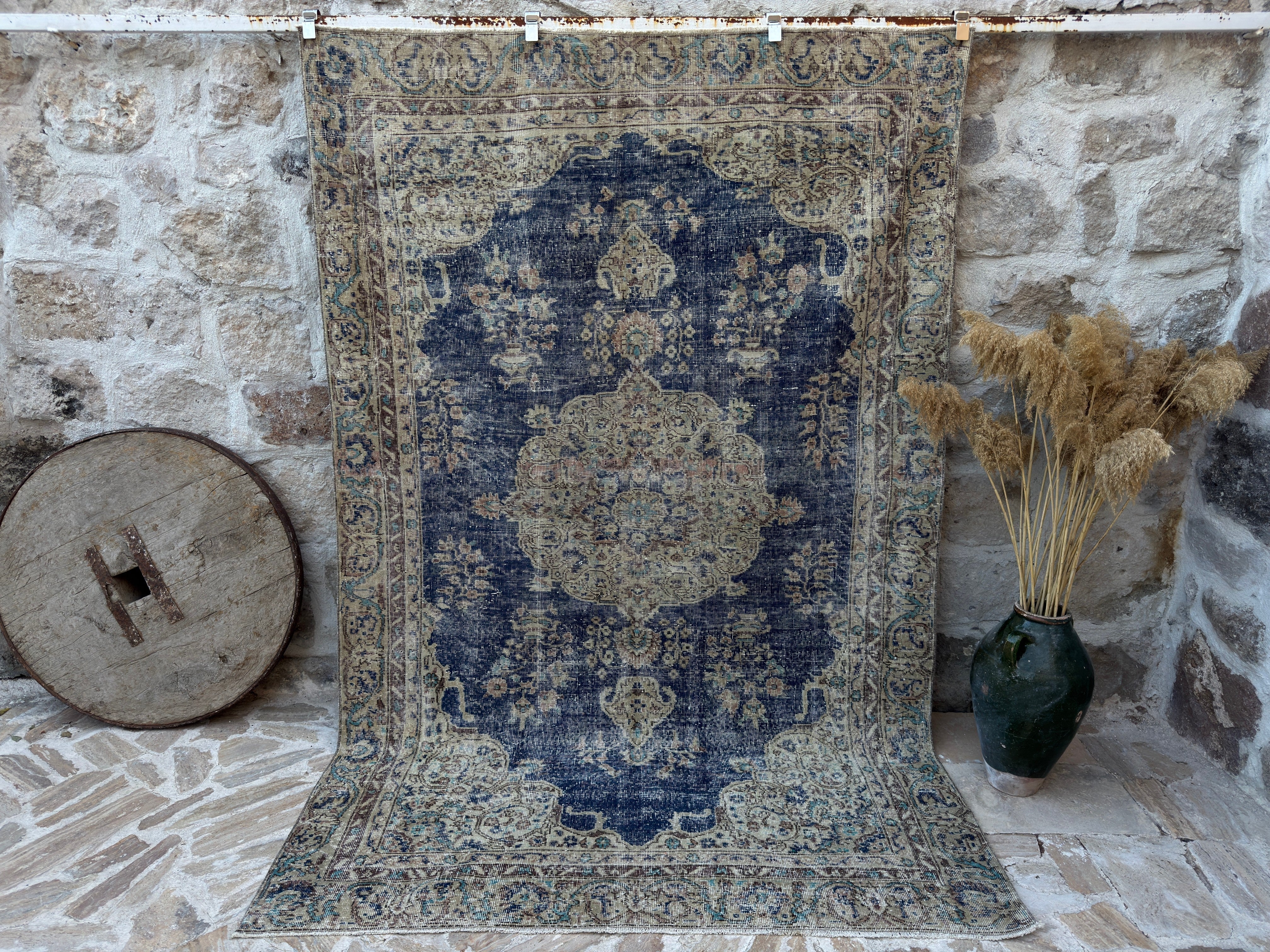 Rug has been professionally cleaned; age-related wear and natural inconsistencies are inherent in these unique, handcrafted vintage rugs.