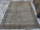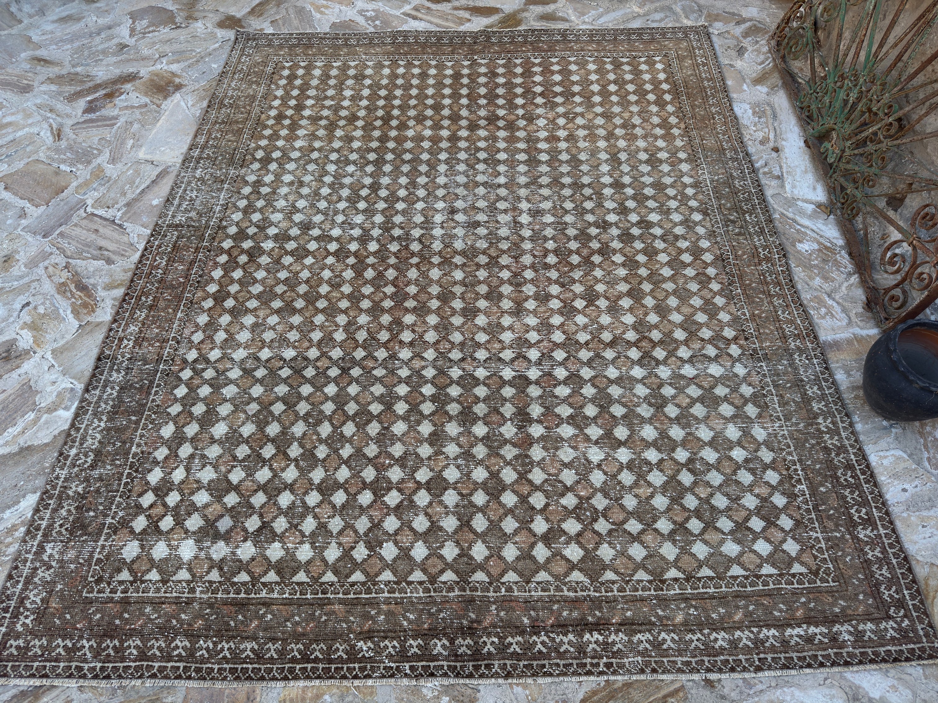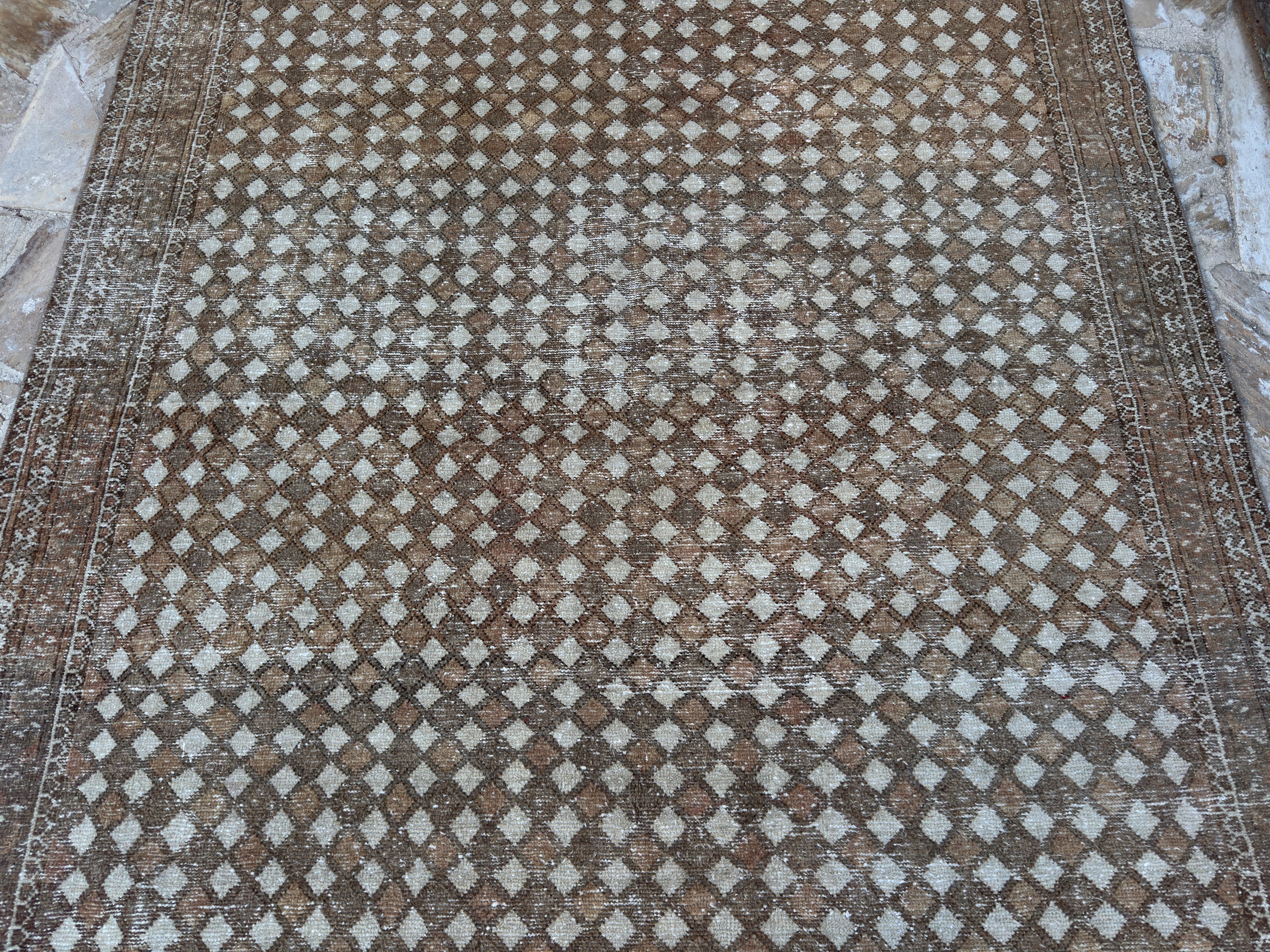 Rug has been professionally cleaned; age-related wear and natural inconsistencies are inherent in these unique, handcrafted vintage rugs.