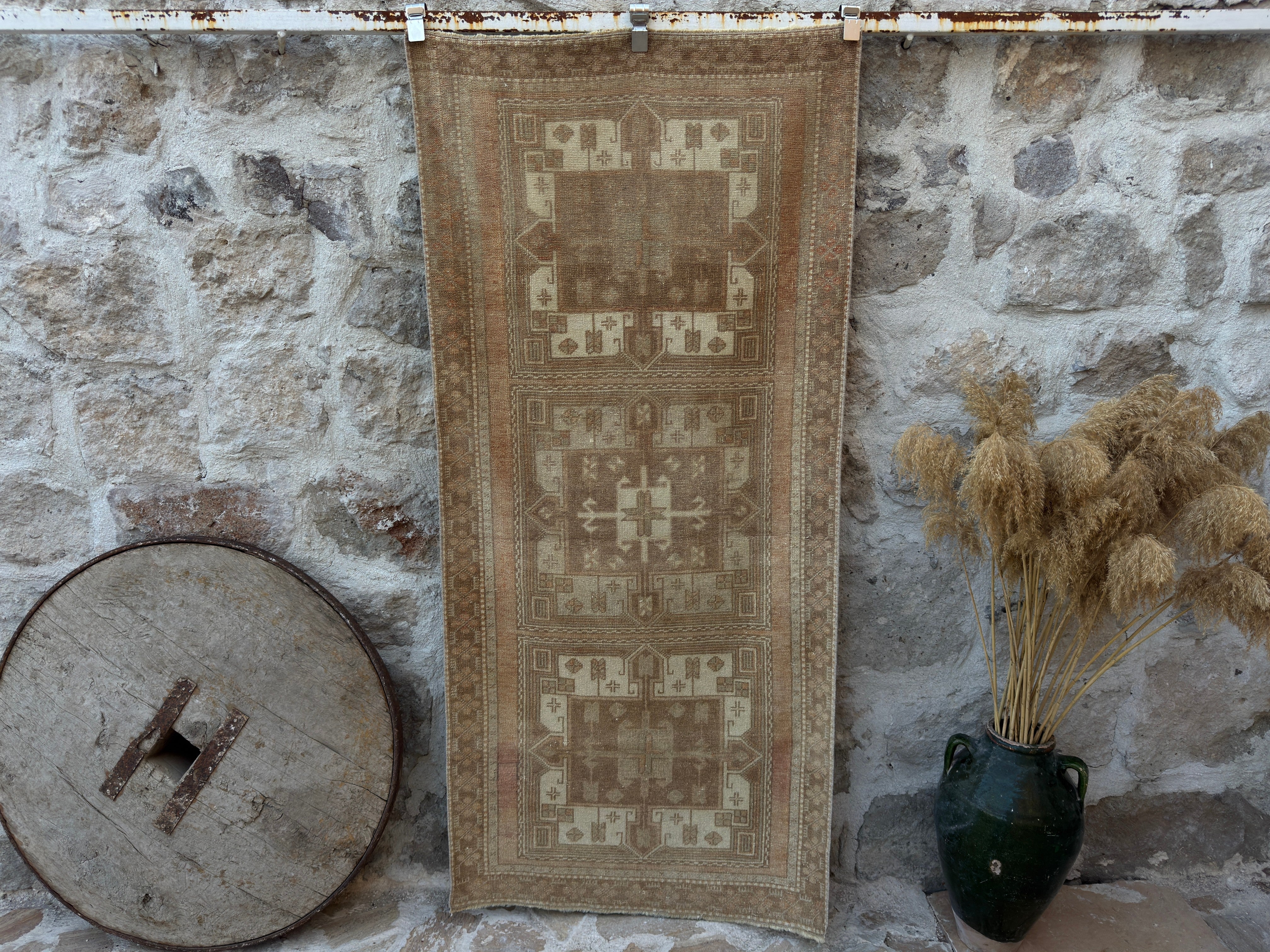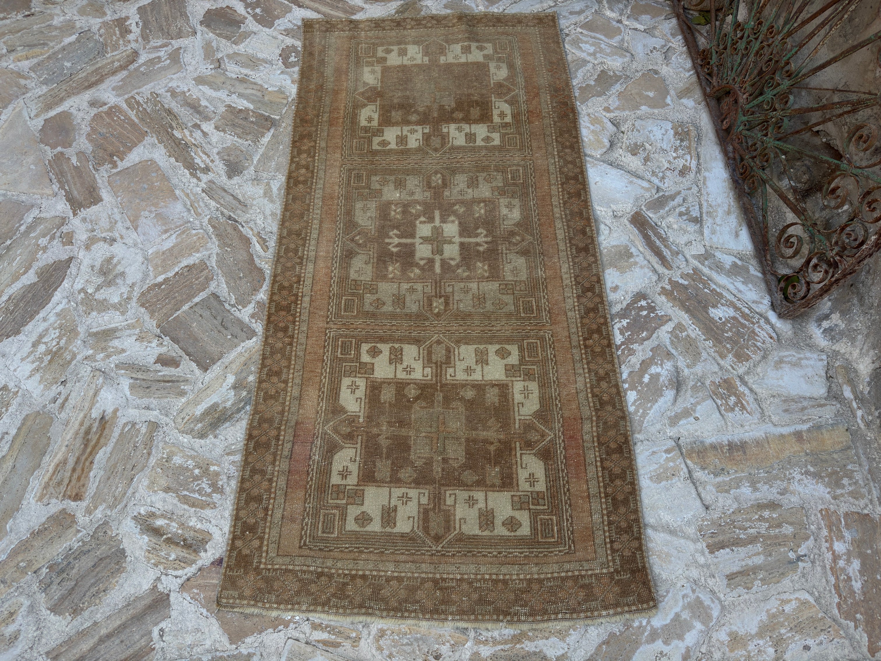 Rug has been professionally cleaned; age-related wear and natural inconsistencies are inherent in these unique, handcrafted vintage rugs.