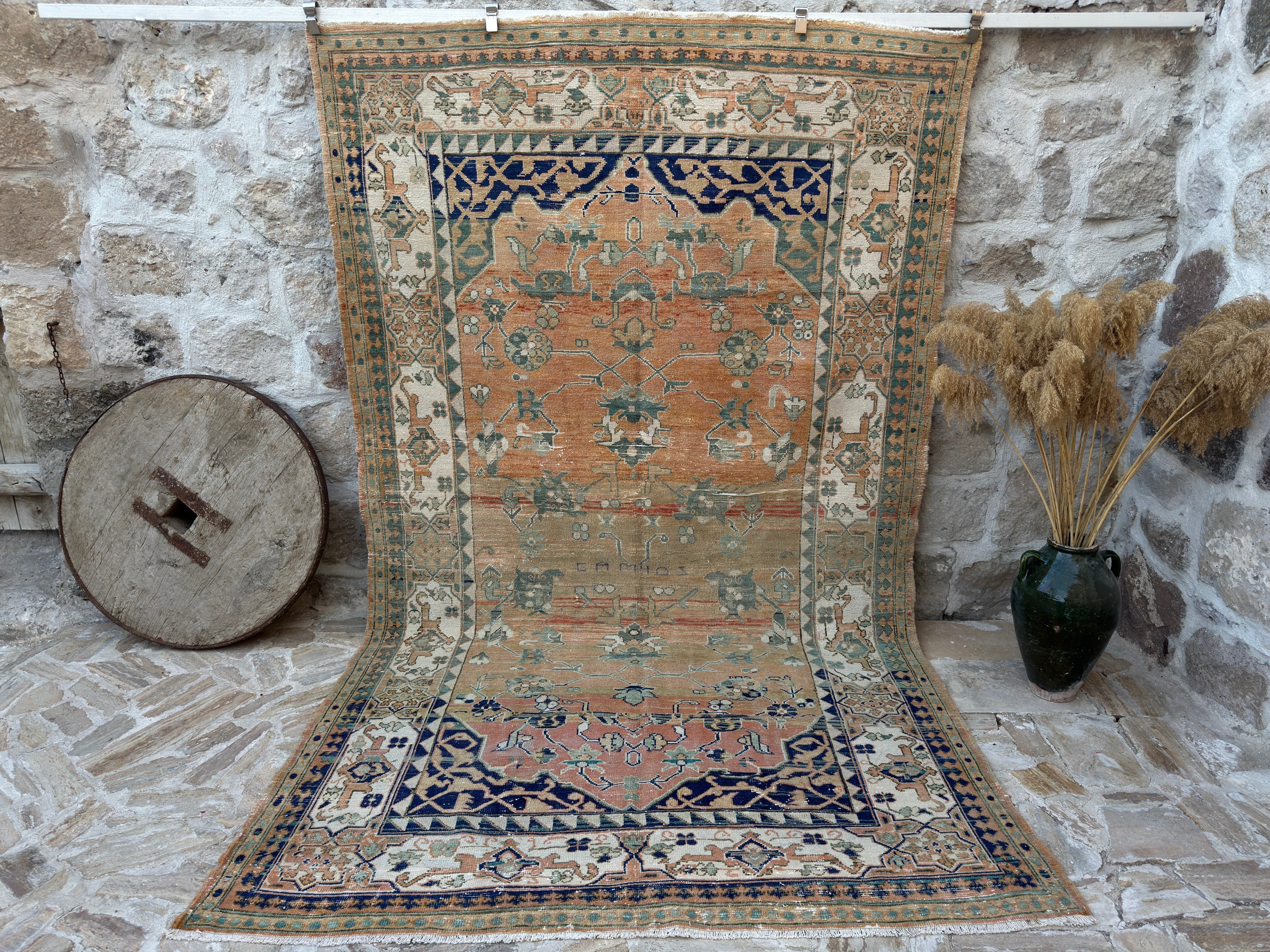 One-of-a-kind vintage rug, handknotted in Turkish