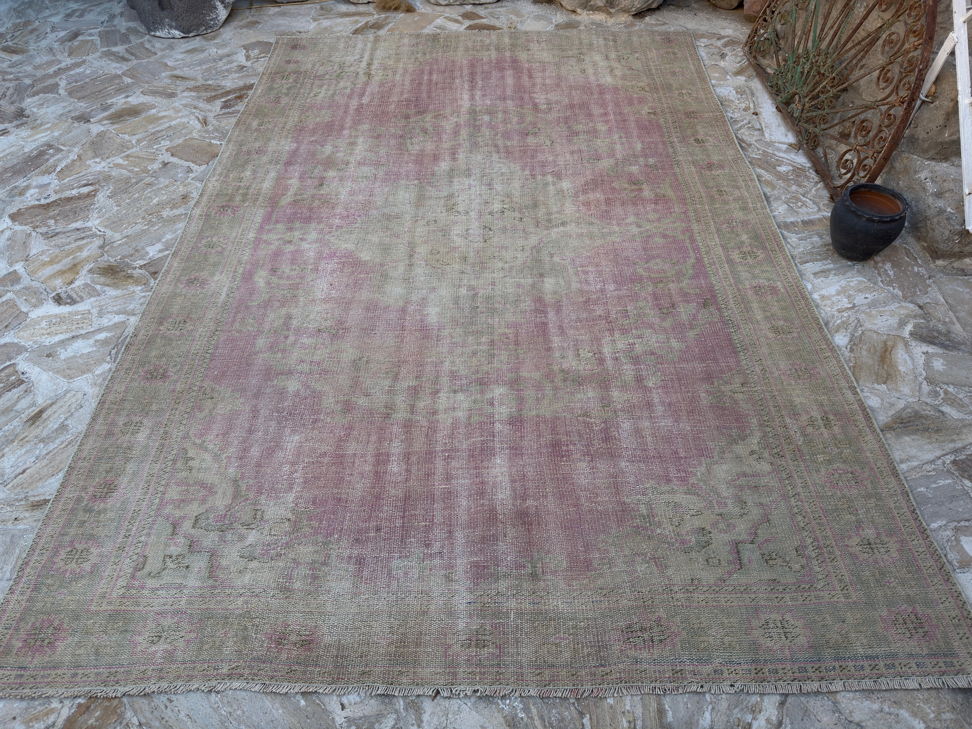 One-of-a-kind vintage rug, handknotted in Turkish