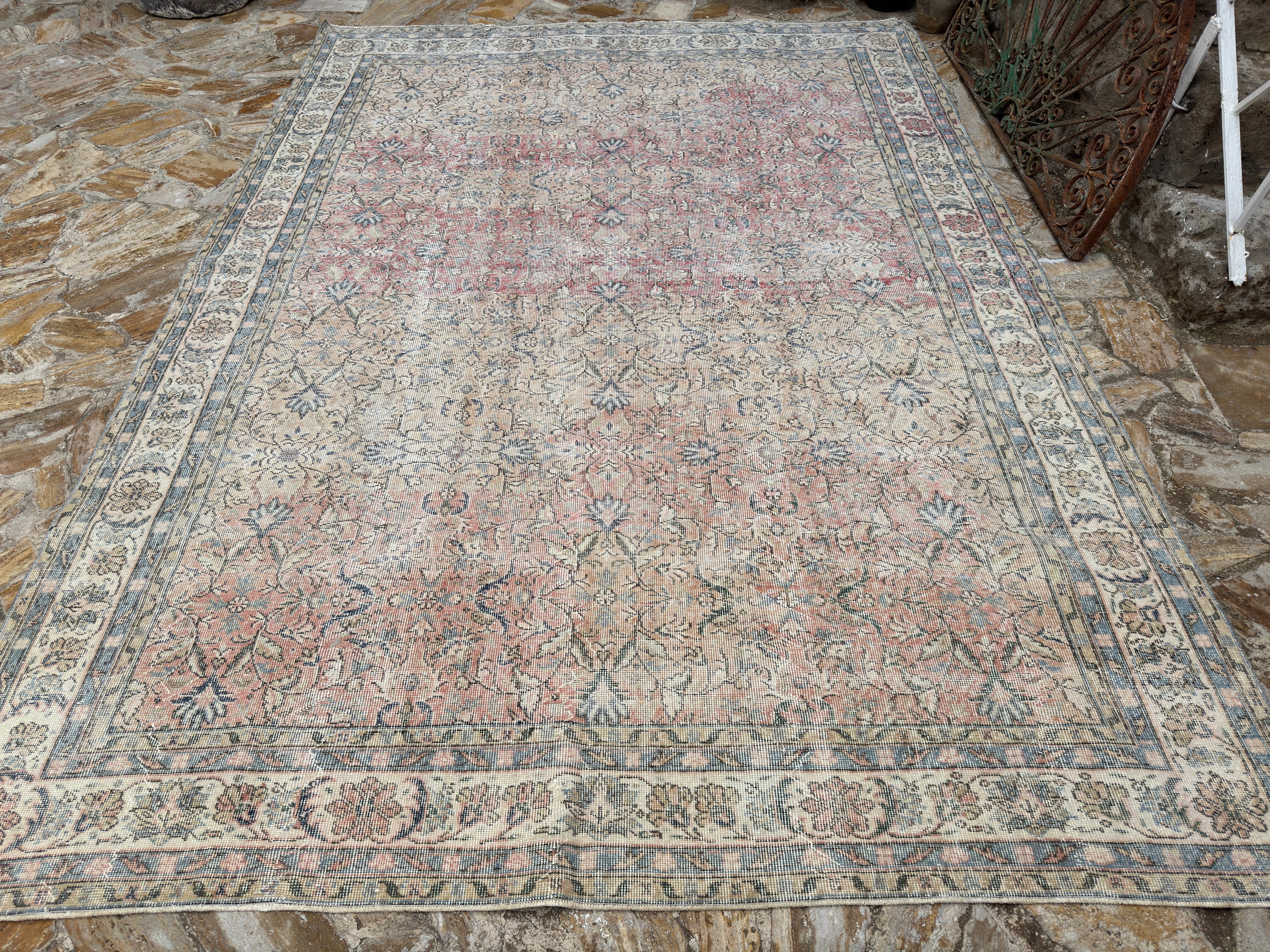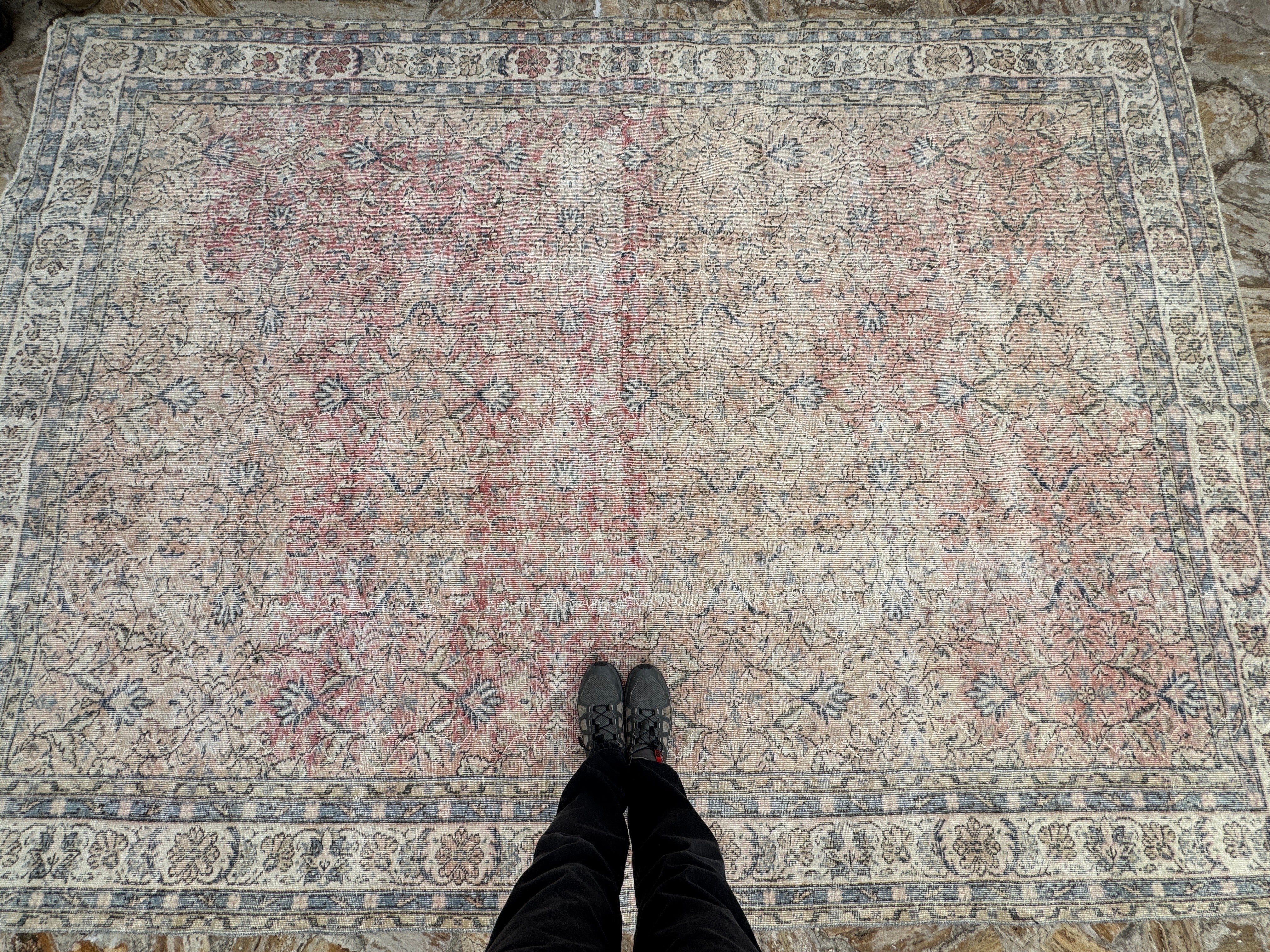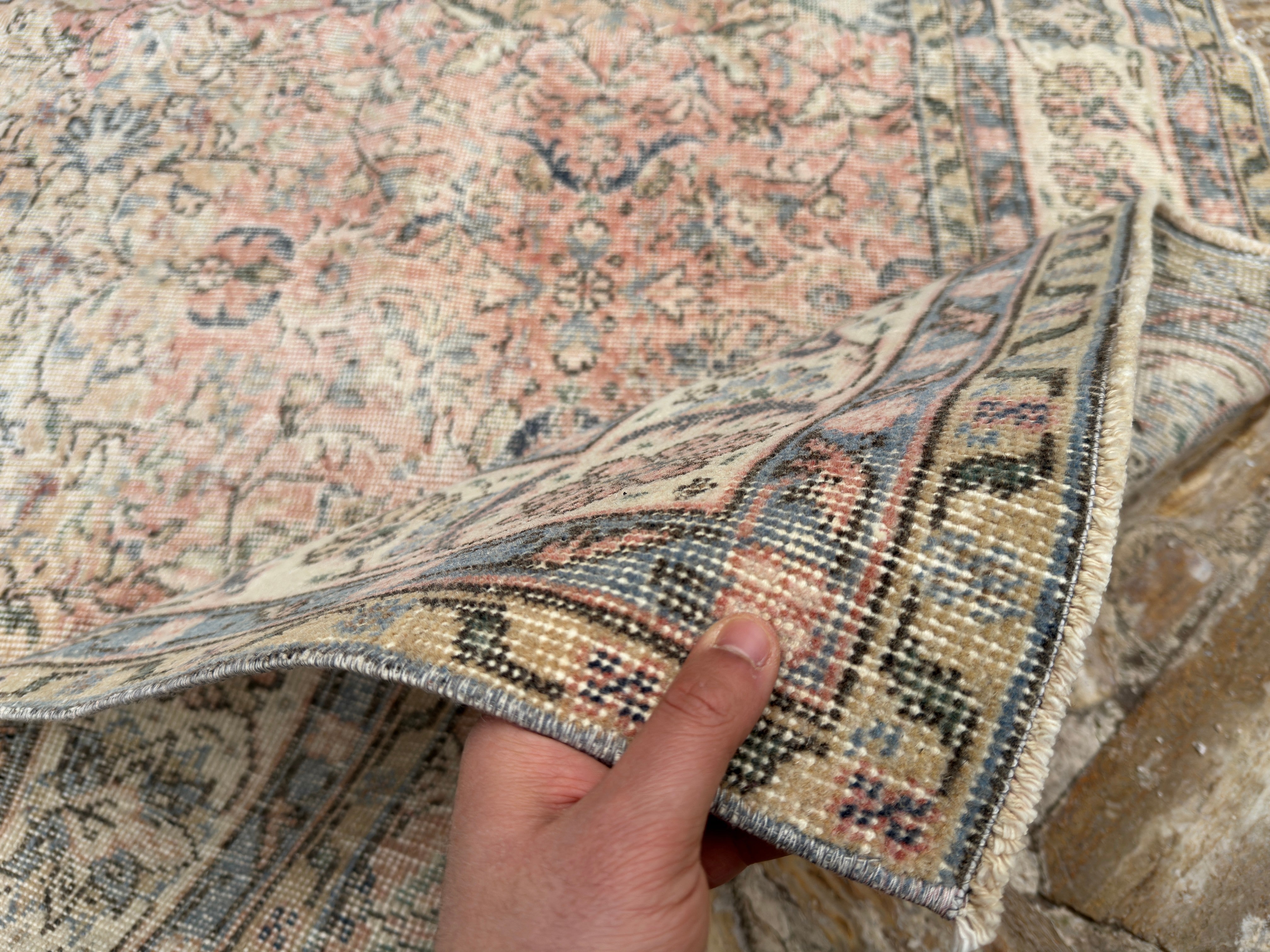 Rug has been professionally cleaned; age-related wear and natural inconsistencies are inherent in these unique, handcrafted vintage rugs.