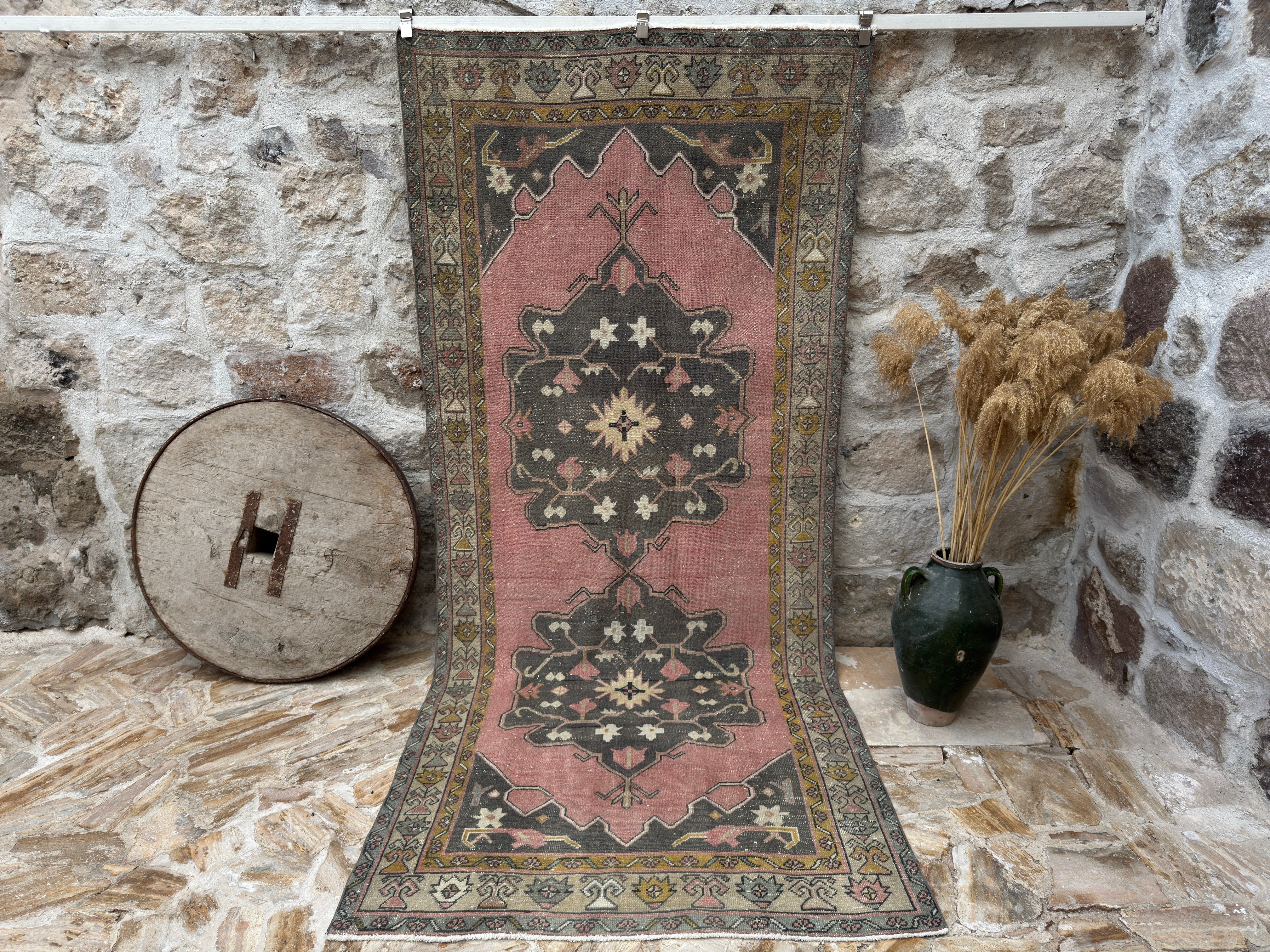 One-of-a-kind vintage rug, handknotted in Turkish