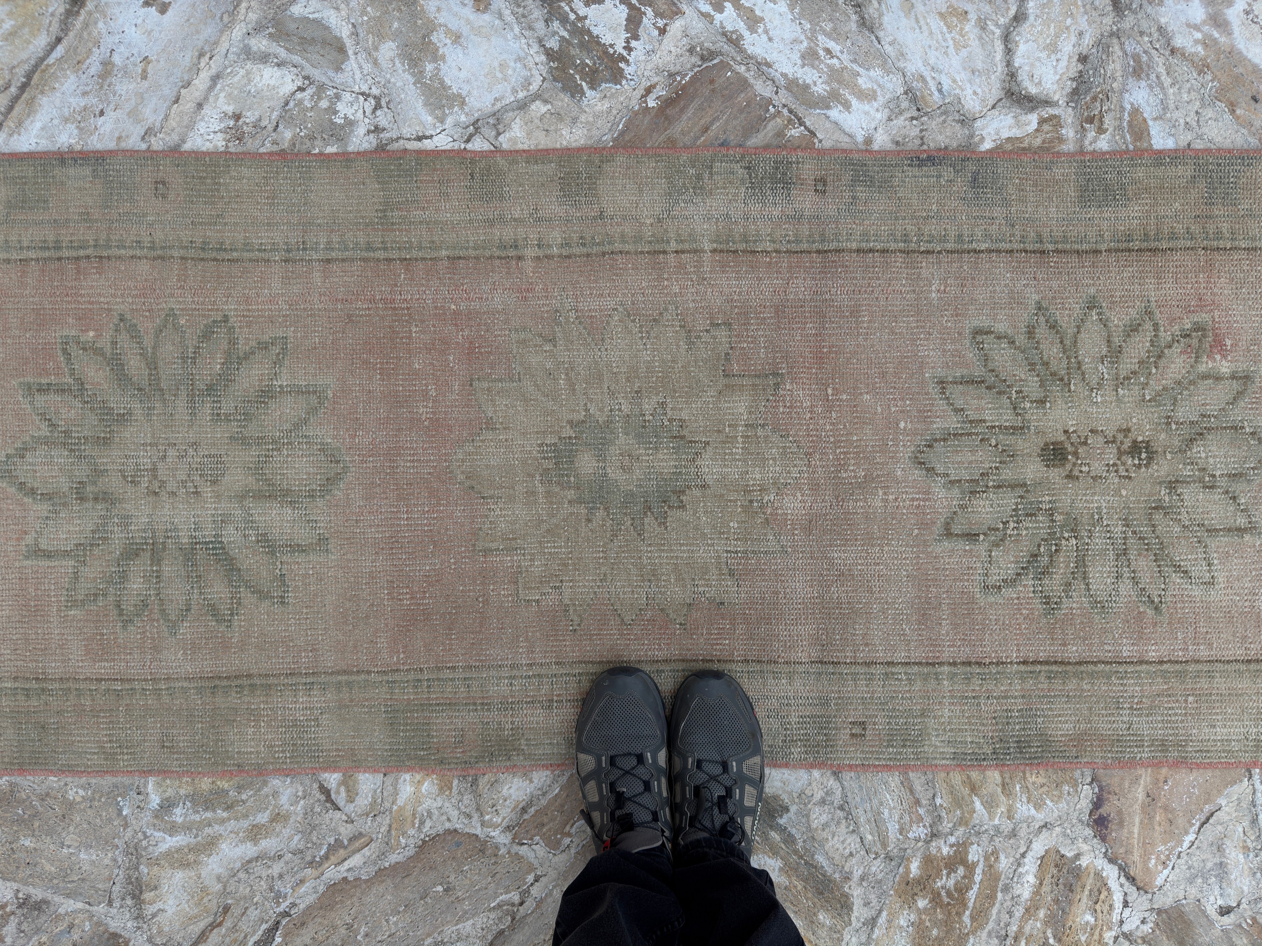 Rug has been professionally cleaned; age-related wear and natural inconsistencies are inherent in these unique, handcrafted vintage rugs.