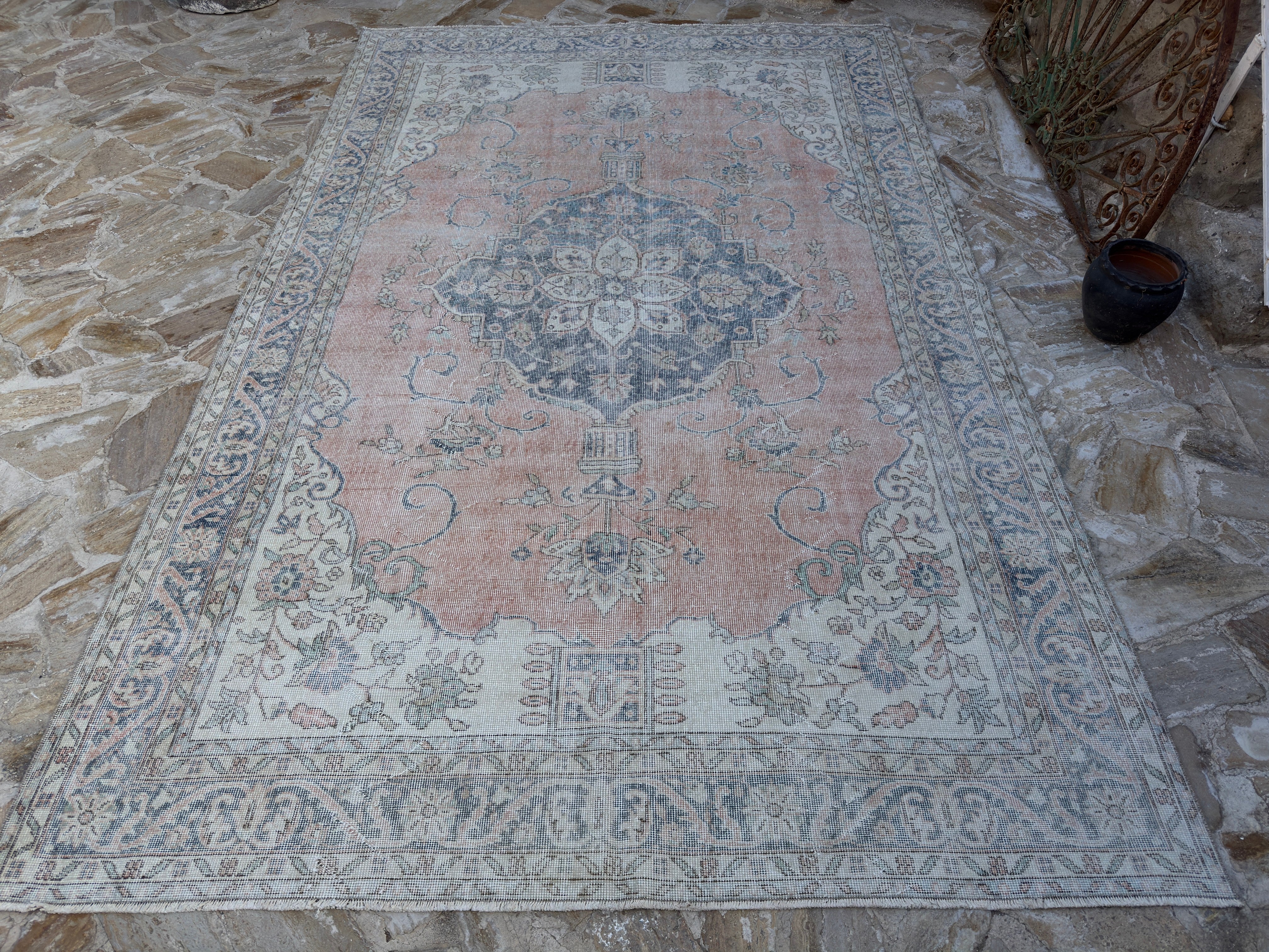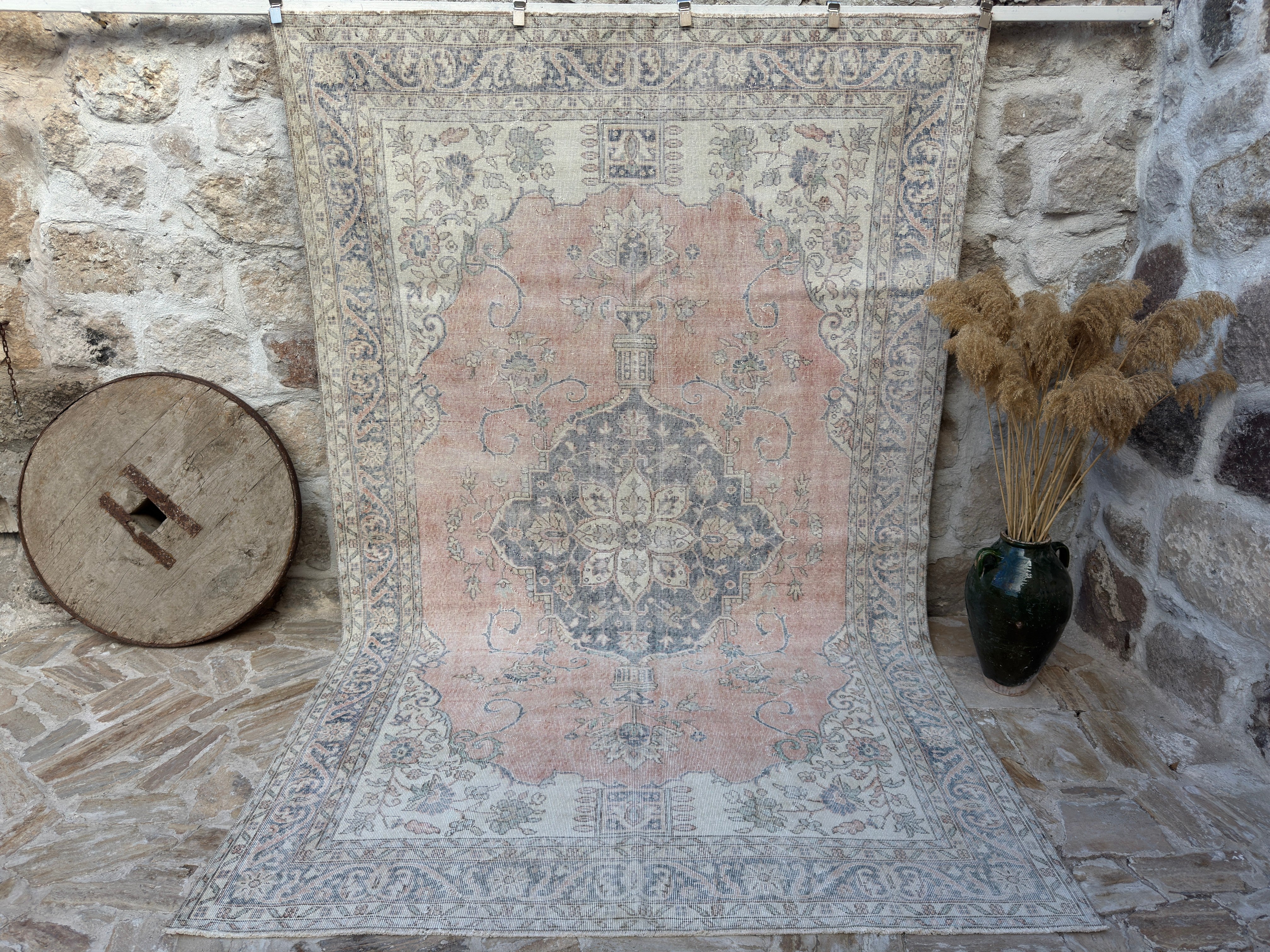Rug has been professionally cleaned; age-related wear and natural inconsistencies are inherent in these unique, handcrafted vintage rugs.