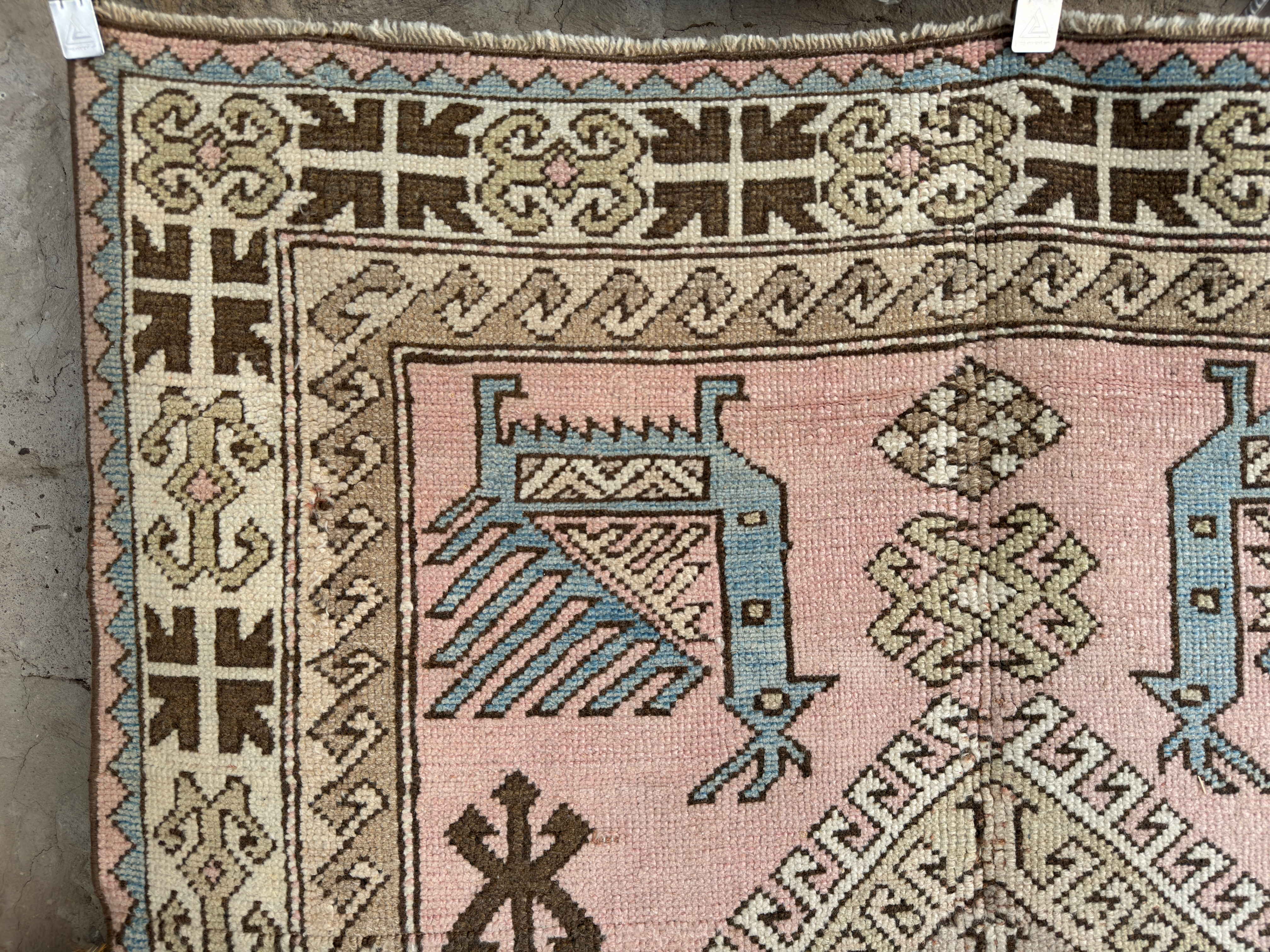 Rug has been professionally cleaned; age-related wear and natural inconsistencies are inherent in these unique, handcrafted vintage rugs.
