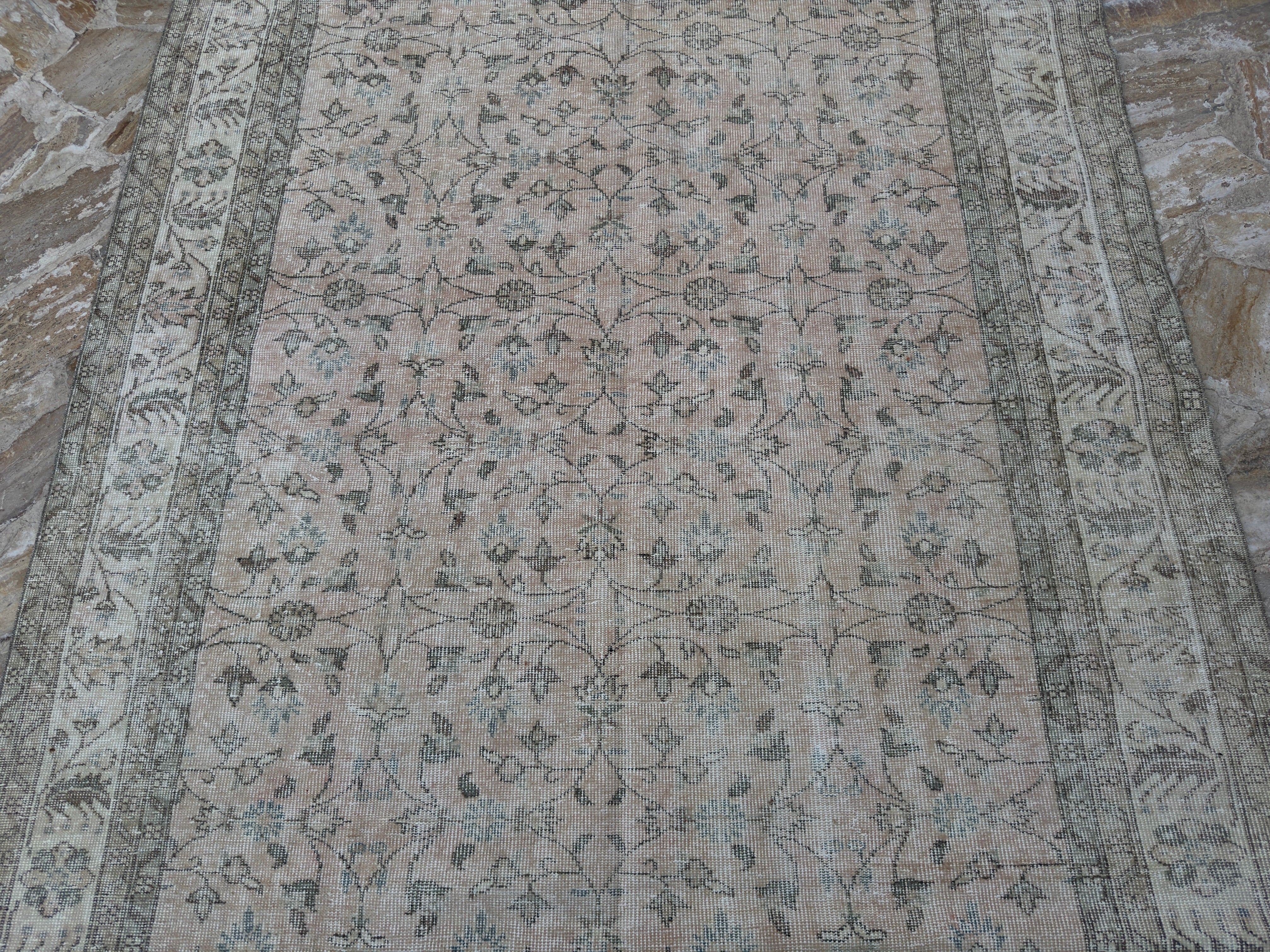 Rug has been professionally cleaned; age-related wear and natural inconsistencies are inherent in these unique, handcrafted vintage rugs.