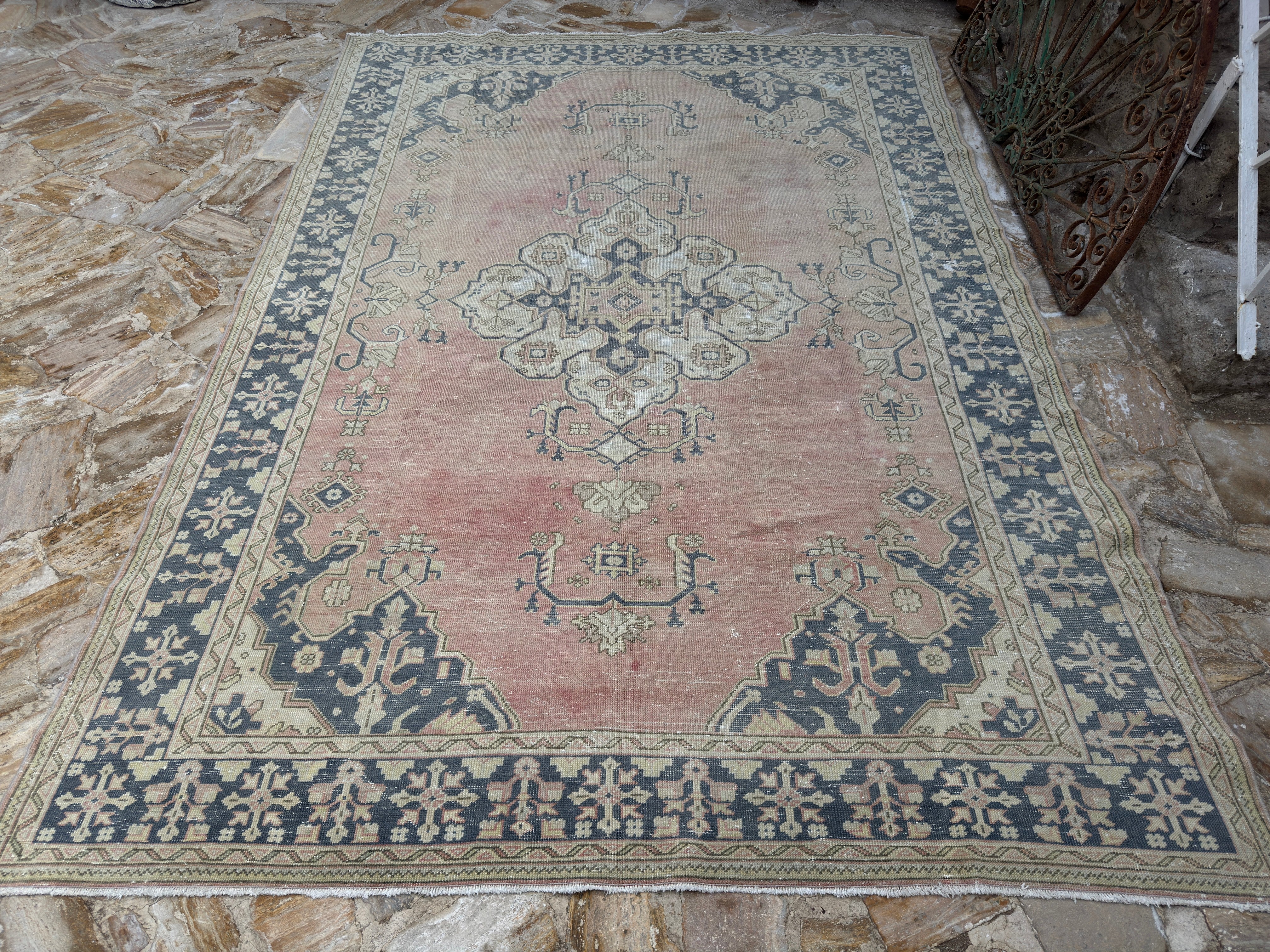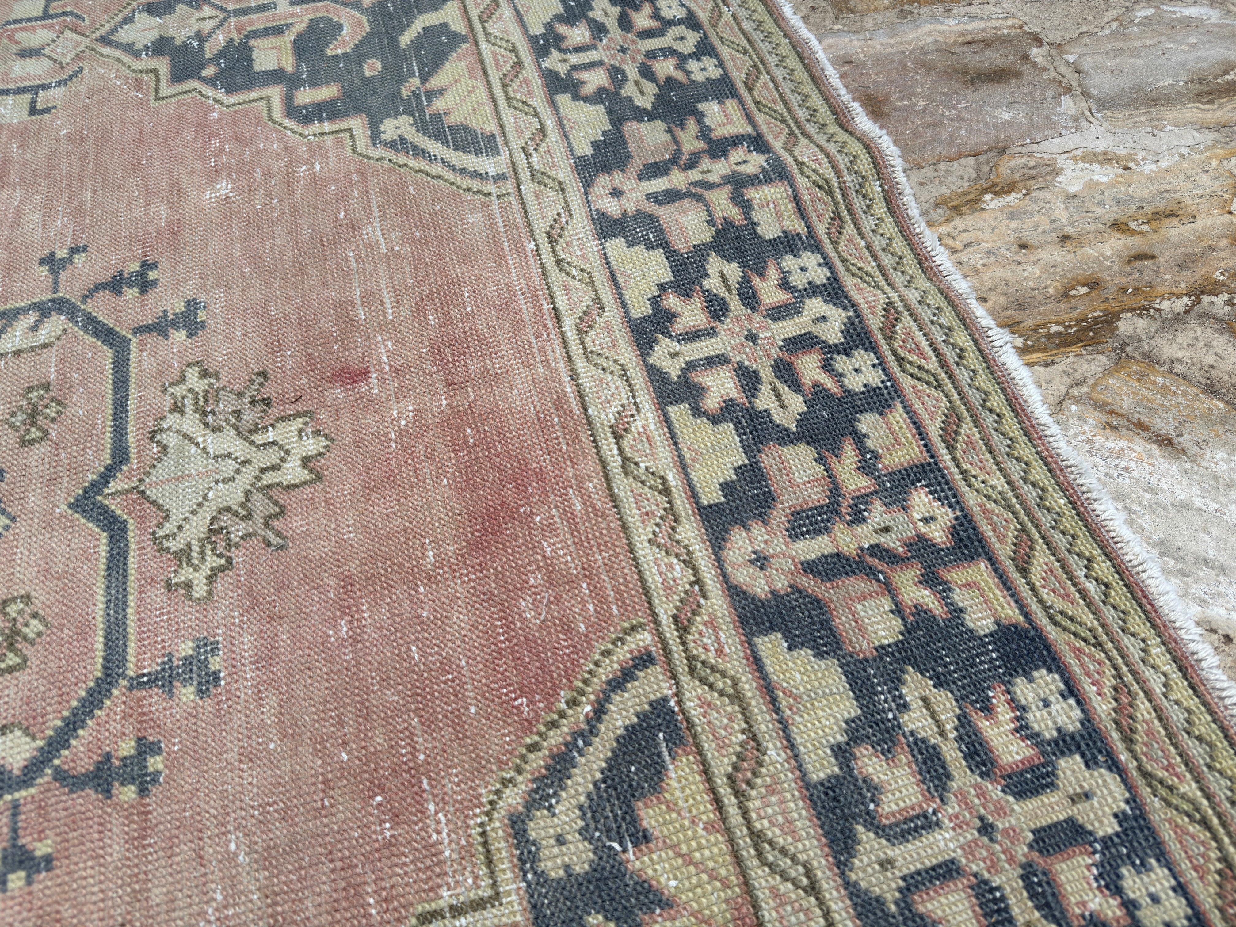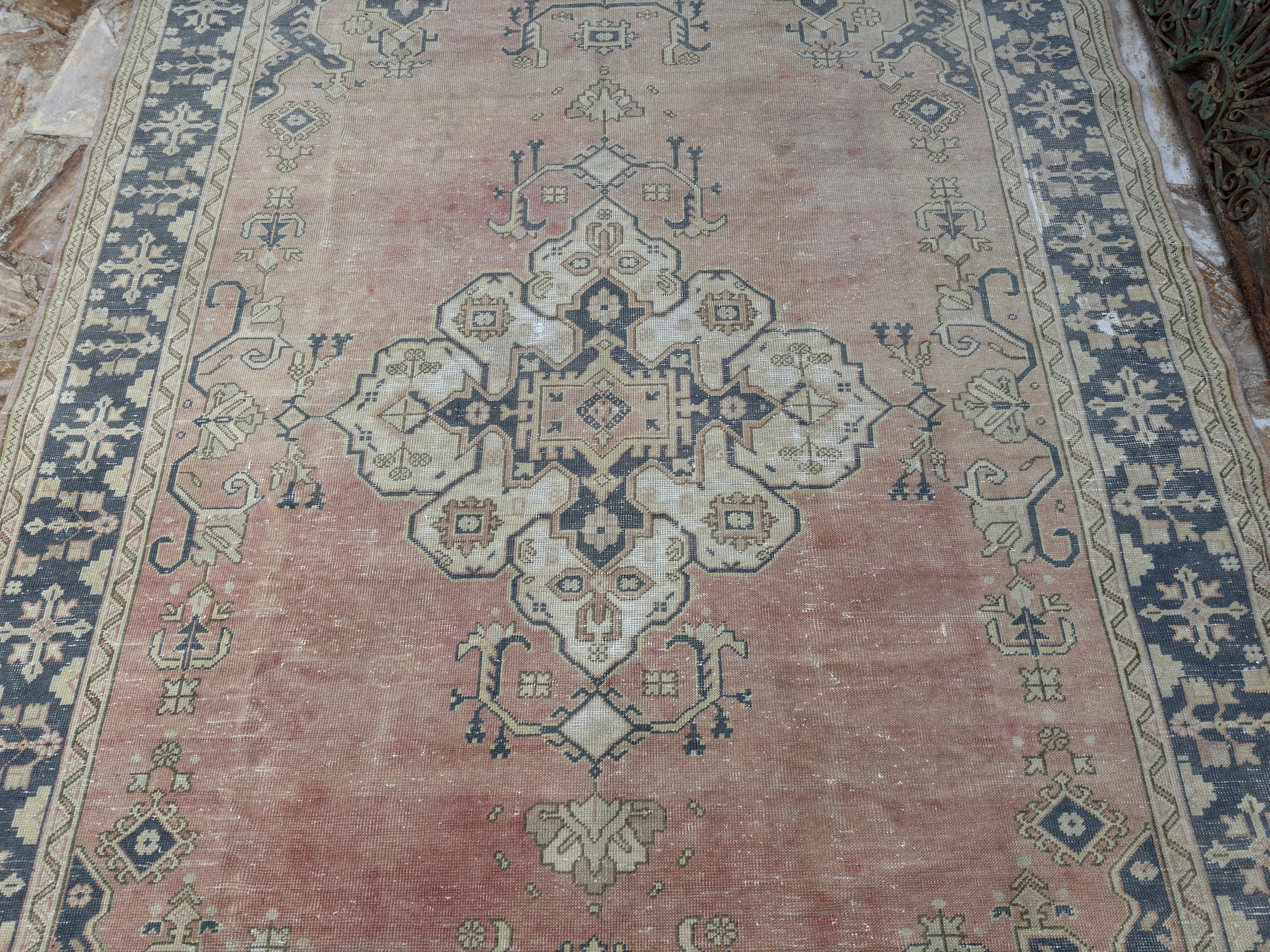 Rug has been professionally cleaned; age-related wear and natural inconsistencies are inherent in these unique, handcrafted vintage rugs.