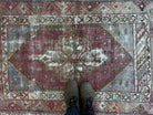 Rug has been professionally cleaned; age-related wear and natural inconsistencies are inherent in these unique, handcrafted vintage rugs.