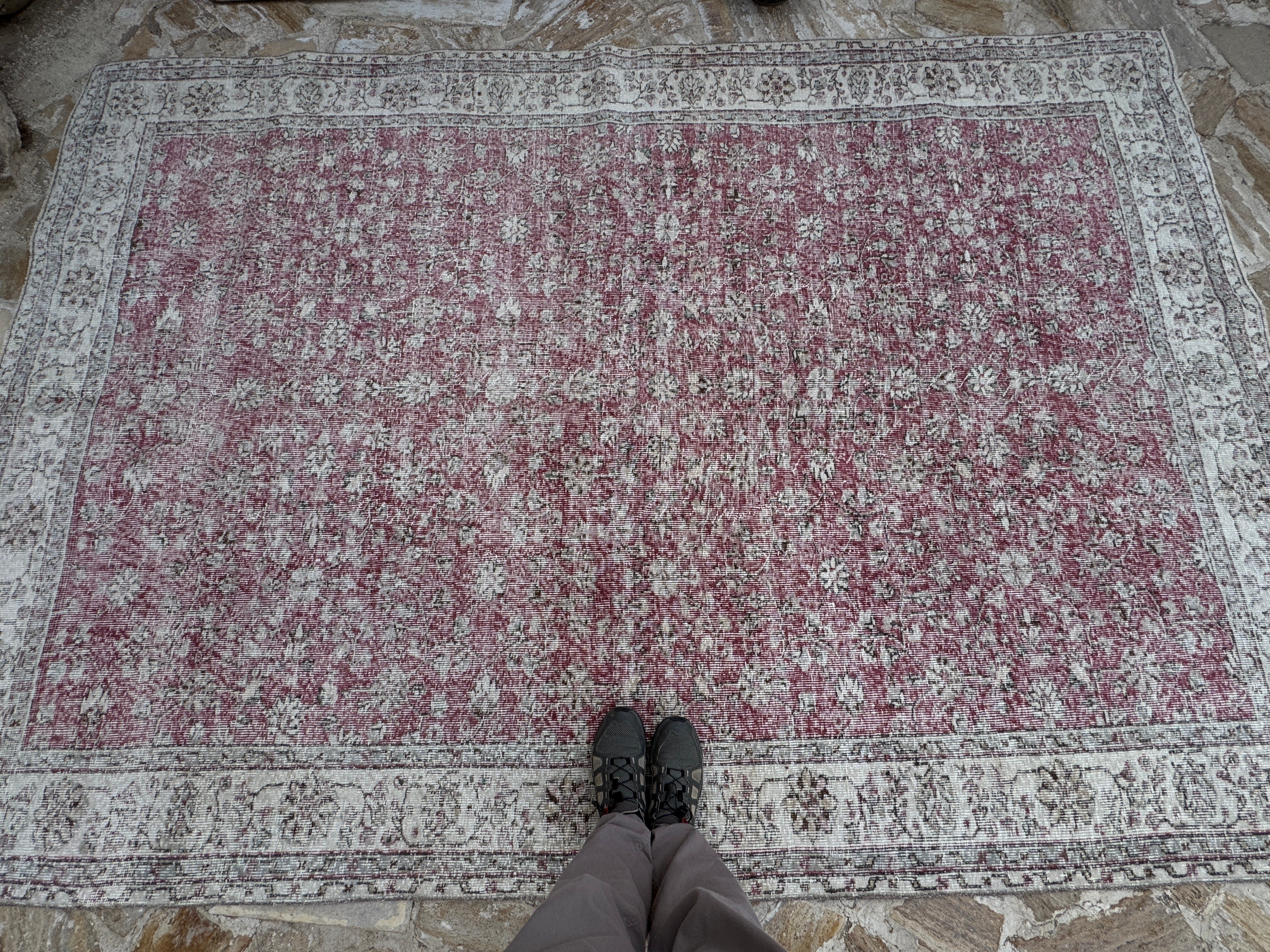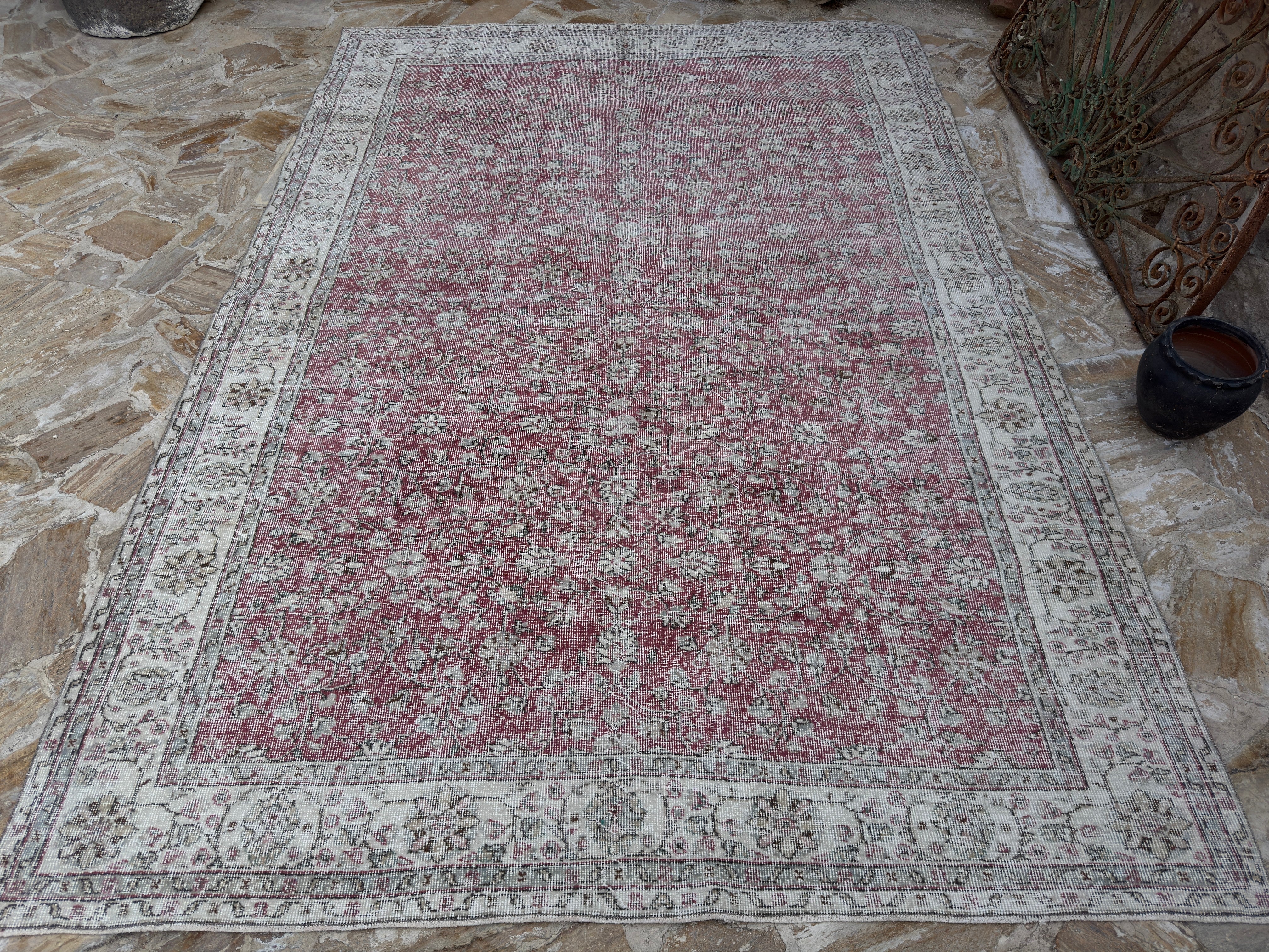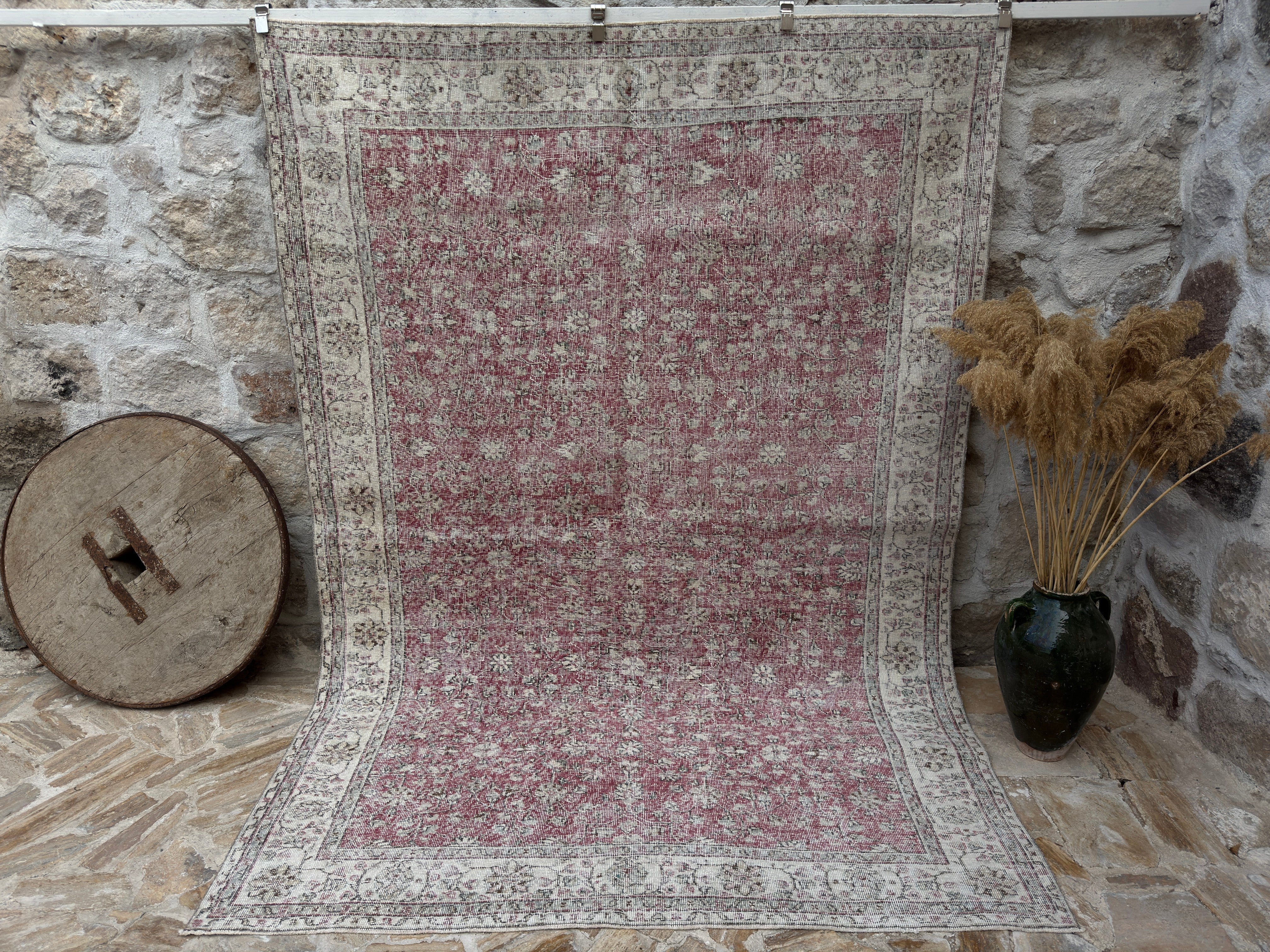 Rug has been professionally cleaned; age-related wear and natural inconsistencies are inherent in these unique, handcrafted vintage rugs.