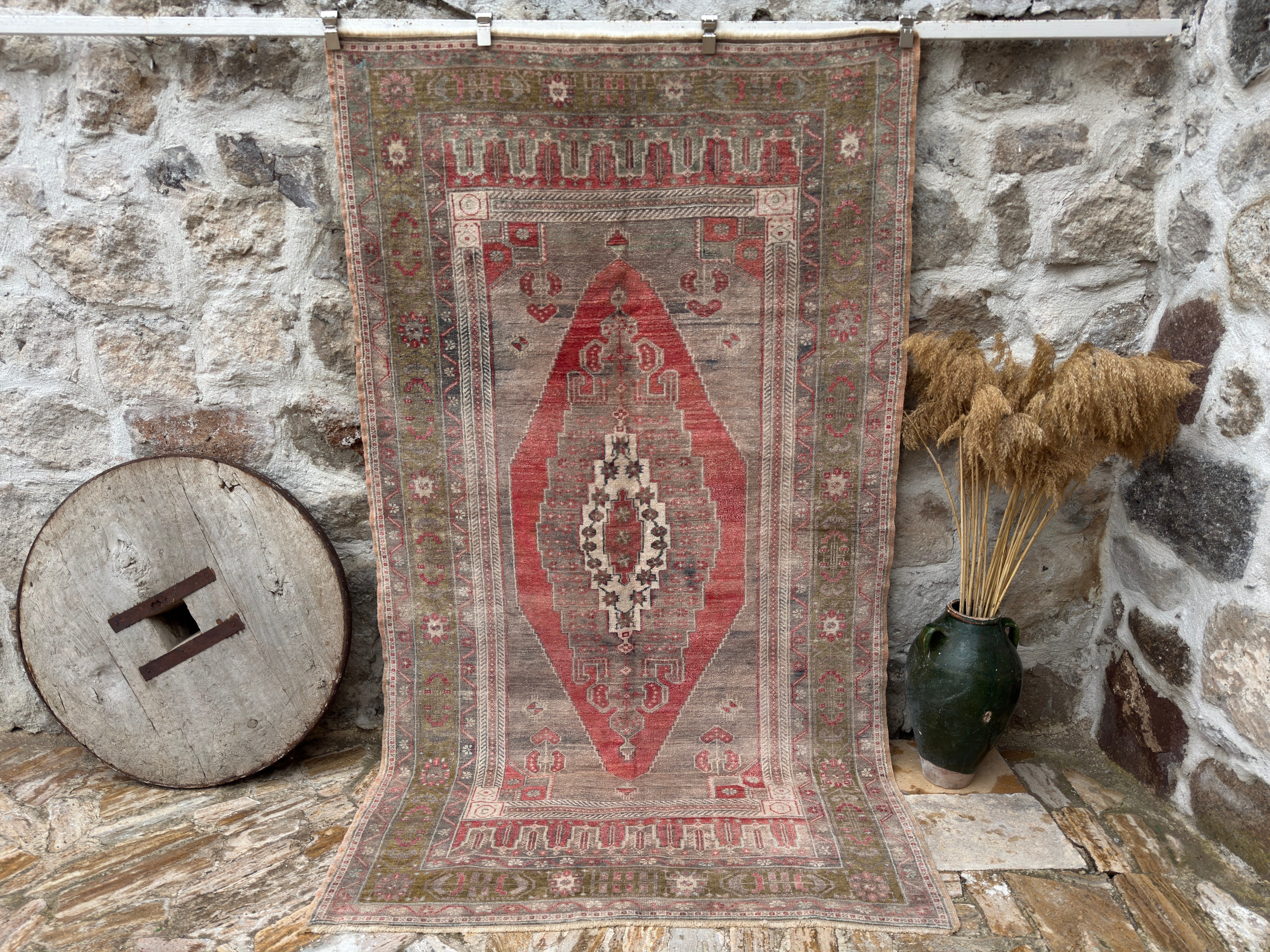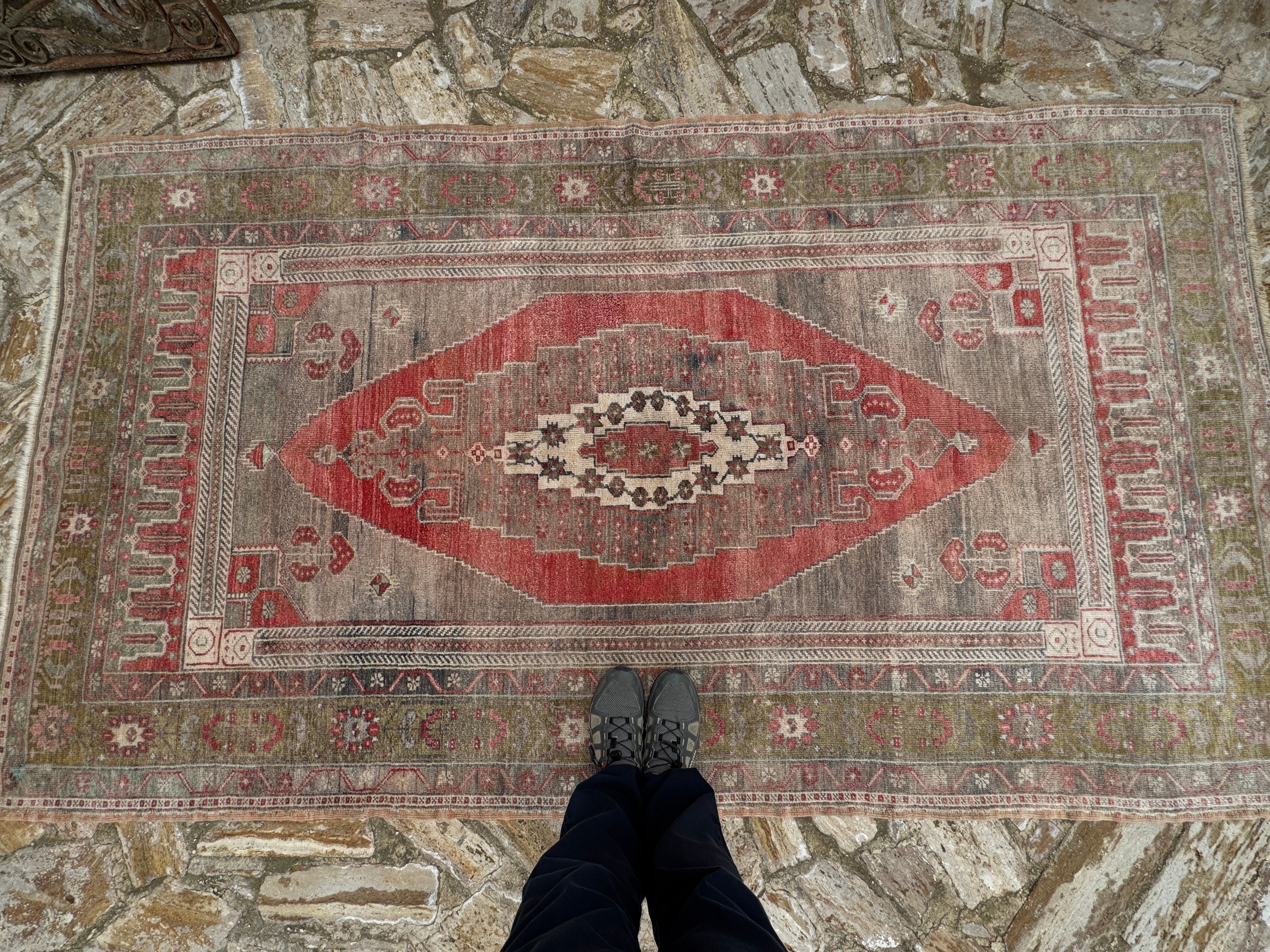 One-of-a-kind vintage rug, handknotted in Turkish